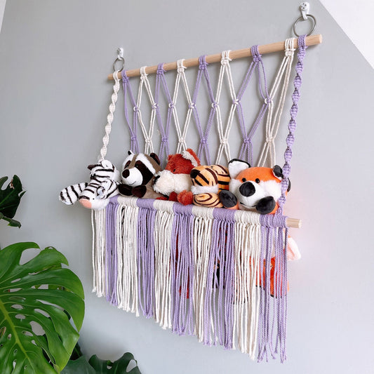 Sale price $12.99Shipping IncludedStylish Bohemian Toy Organizer with Mesh Storage for Kids' Rooms - Perfect for Books and Plush Toys