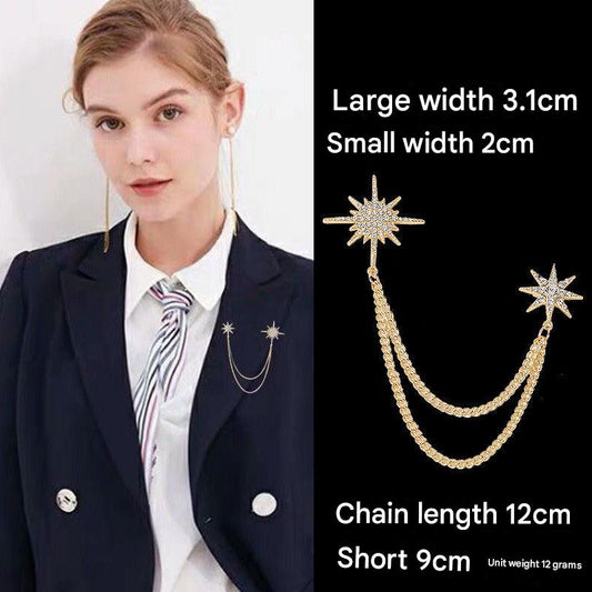 Sale price $6.99Shipping IncludedChic Star Shape Brooch with Chain - Elegant Lapel Pin for Men and Women