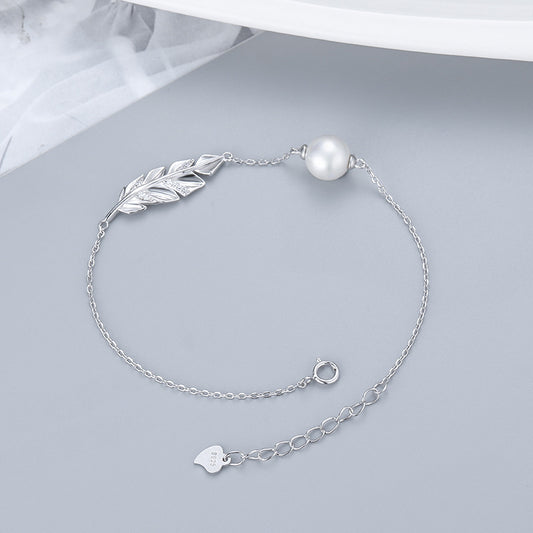 Sale price From $14.49Shipping IncludedS925 Silver Leaf Bracelet with Pearls - Elegant Women's Jewelry for Any Occasion