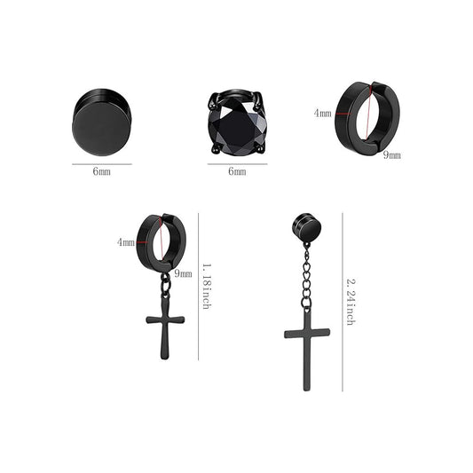 Shop Stylish Non-Pierced Magnetic Zirconia Stud Earrings – 15 Pairs of Stainless Steel Cross Clips for Effortless Fashion