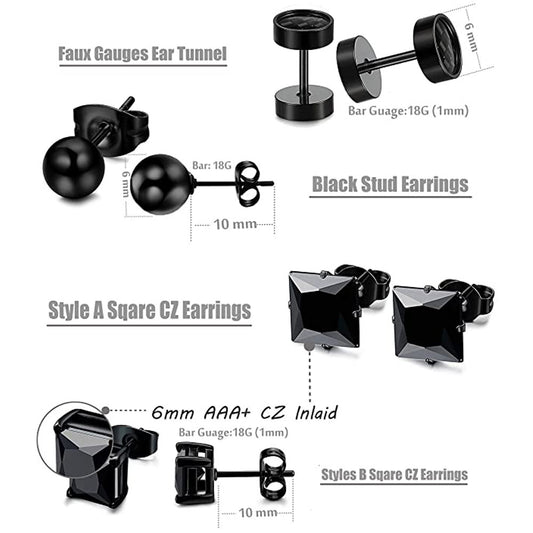 Sale price From $10.49Shipping IncludedStylish 10-Pair Black Zircon Ear Studs for Men - Trendy Geometric Design for All Occasions