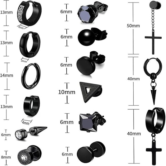 Regular price $11.49Regular priceUnit price / perSale price $11.49Shipping IncludedStylish Black Stainless Steel Ear Studs Set for Men and Women – Versatile Geometric Fashion Earrings