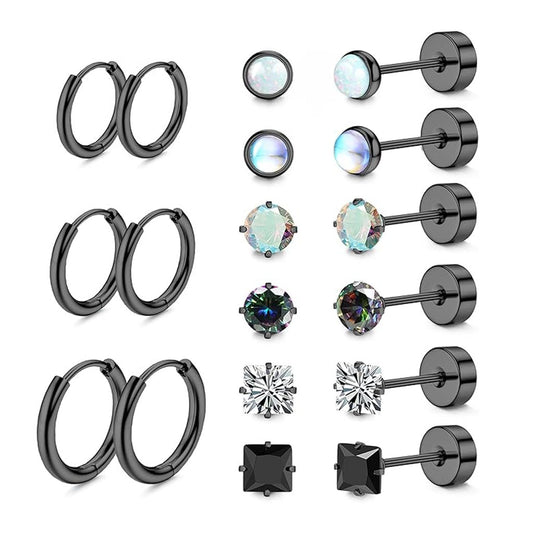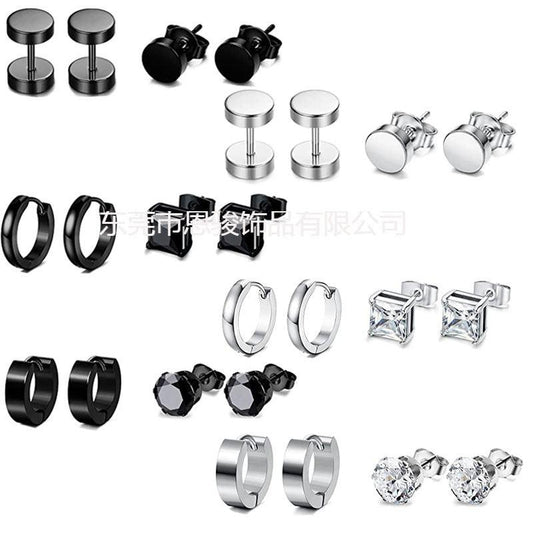 Sale price From $10.49Shipping IncludedStylish Geometric Zirconia Stud Earrings Set - Stainless Steel Ear Accessories for All Occasions