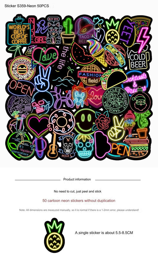 Sale price $10.99Shipping IncludedCreative Neon Graffiti Stickers - 50 Unique Designs for Laptops, Skateboards, and Car Decor