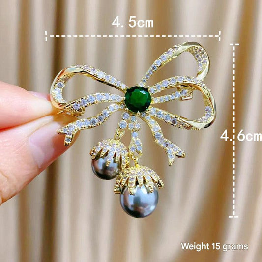 Sale price $6.99Shipping IncludedElegant Bow-Knot Rhinestone Brooch with Green Crystal – French Chic Accessory for Women