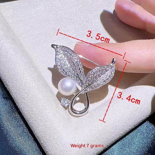 Sale price $6.99Shipping IncludedElegant Silver & Gold Leaf Brooch with Pearl Accents - Exquisite Fashion Accessory for Women