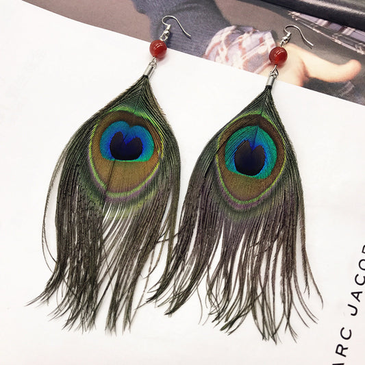 Sale price $6.49Shipping IncludedBohemian Vintage Peacock Feather Long Dangle Earrings - Stylish Statement Tassel Jewelry for Women
