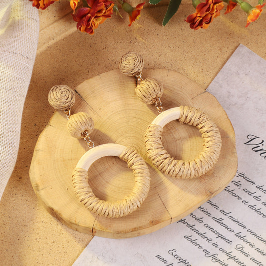 Sale price From $7.49Shipping IncludedHandcrafted Boho Chic Rattan Drop Earrings for Women - Perfect for Beach Vacations and Bohemian Styles