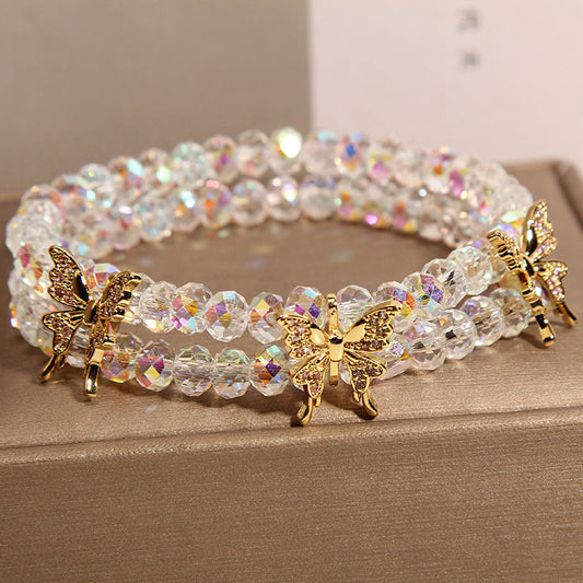Sale price $10.49Shipping IncludedElegant Double Layer White Crystal Bracelet for Women - Luxurious Butterfly Design, Perfect Gift for Friends and Students