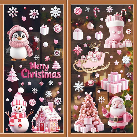 Sale price $9.99Shipping IncludedPink Christmas Tree and Cabin Static Cling Decals for Festive Holiday Decor