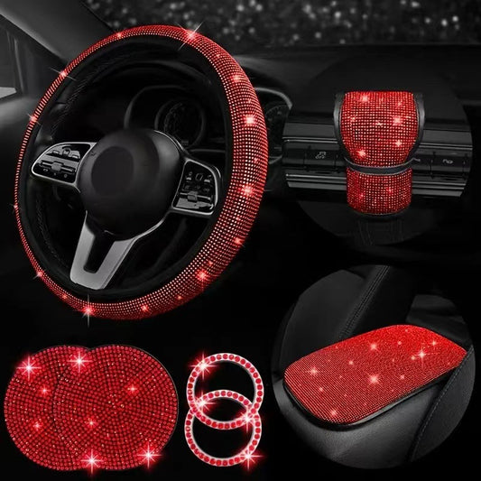 Sale price $30.99Shipping IncludedLuxury Car Steering Wheel Cover Set with Bling Rhinestones, Universal Fit, 7-Piece Set Including Cup Pad and Armrest Cushion