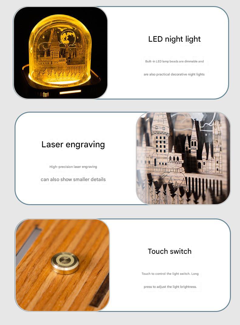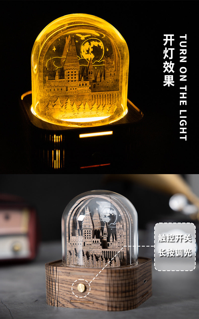 Immerse yourself in the magical world with our 3D Engraved Music Box Night Light. Tailored with exceptional craftsmanship, it showcases detailed carvings of the iconic Hogwarts Express Train executed on premium black walnut wood. This night light doubles as a music box playing nostalgic themes from beloved stories, enabled with a touch control feature for effortless operation. Whether you are decorating your space or choosing a unique gift, this night light-music box combo promises to be a delightful addition to any setting. Ideal for personal use or as a thoughtful gift, it is suited for multiple occasions including business gifts, promotional activities, and personal milestones.