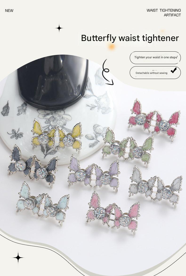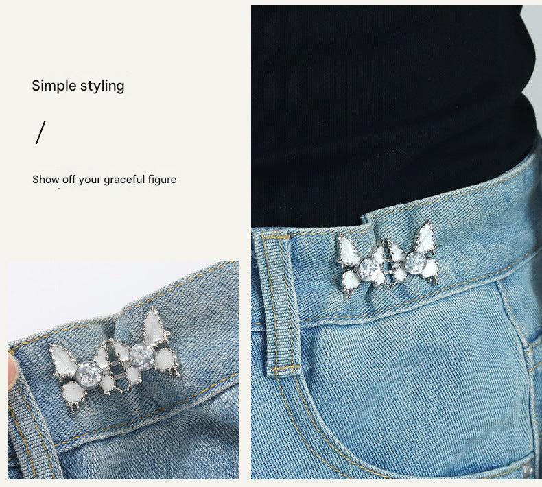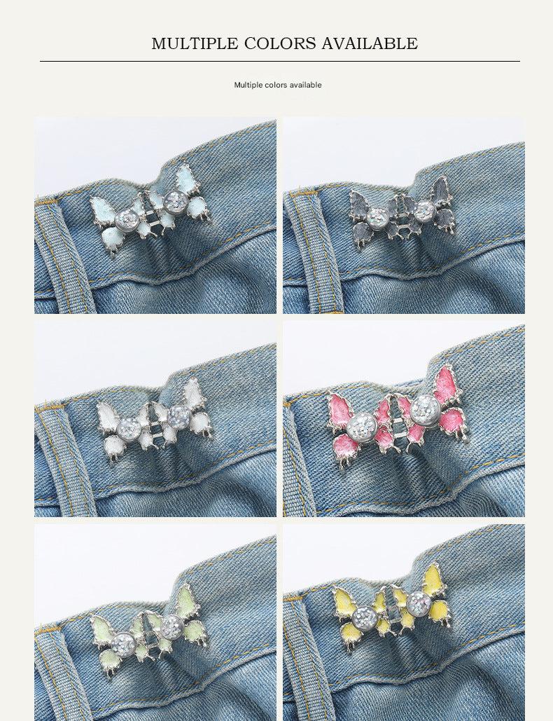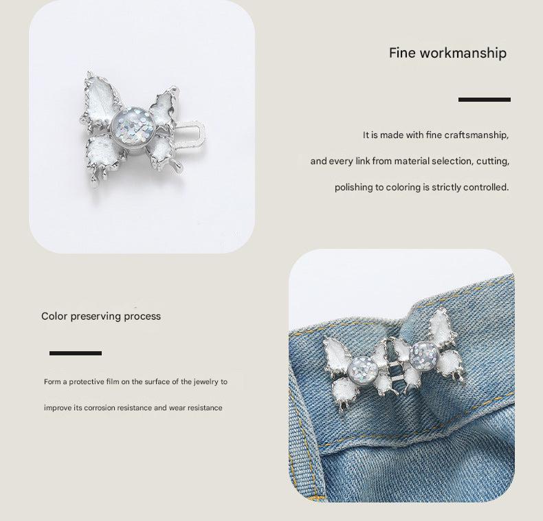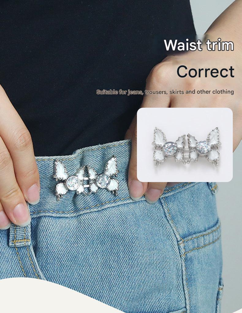Adjustable Waist Butterfly Buckle with Rhinestones - No Sew Waist Size Reducer for Instant Fit