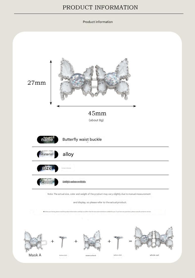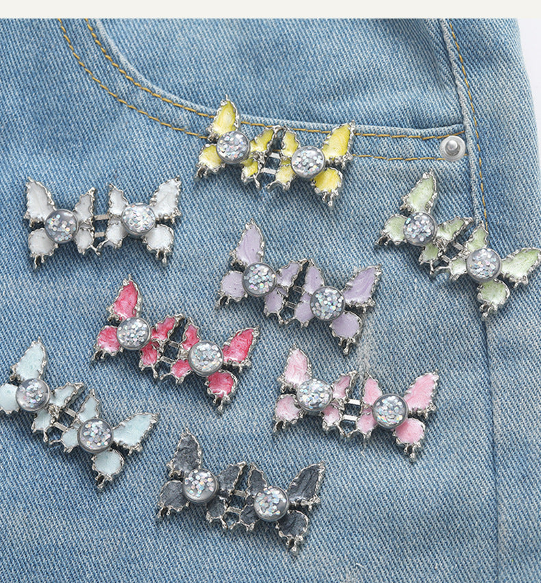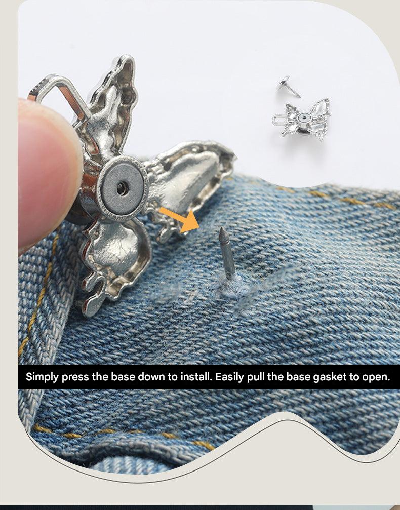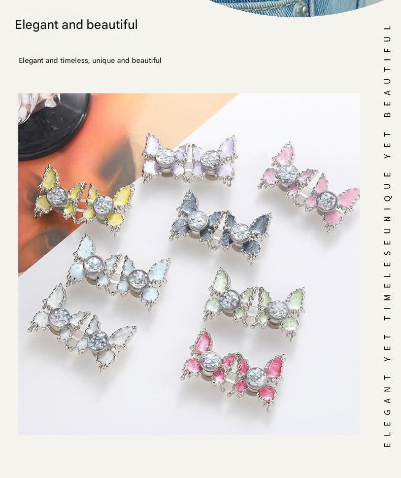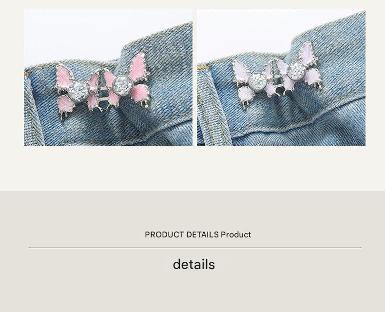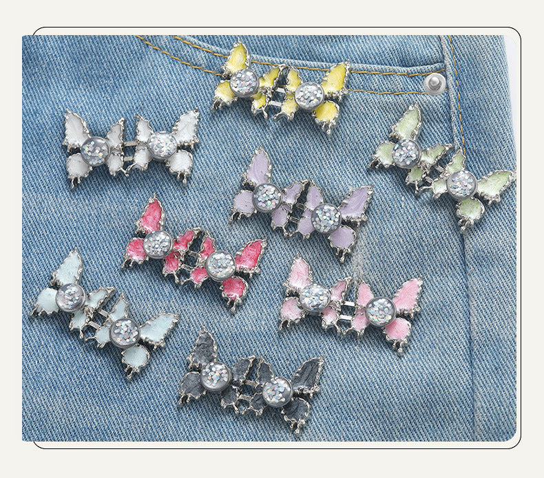 Adjustable Waist Butterfly Buckle with Rhinestones - No Sew Waist Size Reducer for Instant Fit