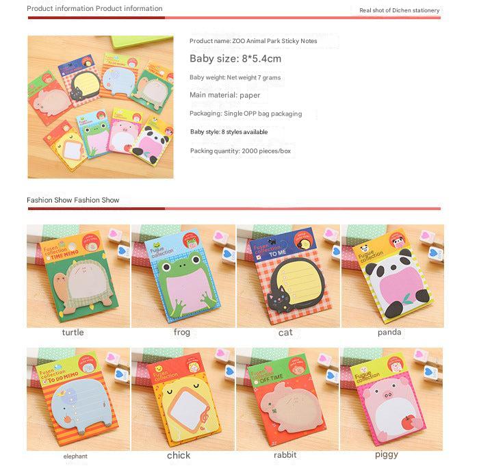 • Cute and Creative Design: Features a variety of cartoon zoo animals including a frog, pig, rabbit, elephant, cat, panda, turtle, and chick that add a playful touch to your notes.