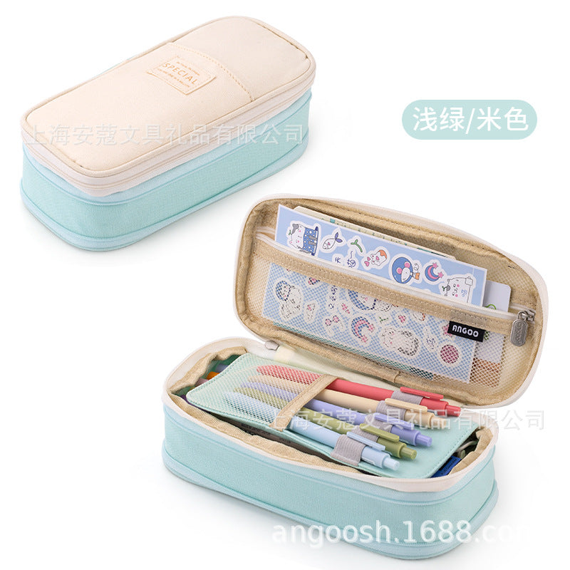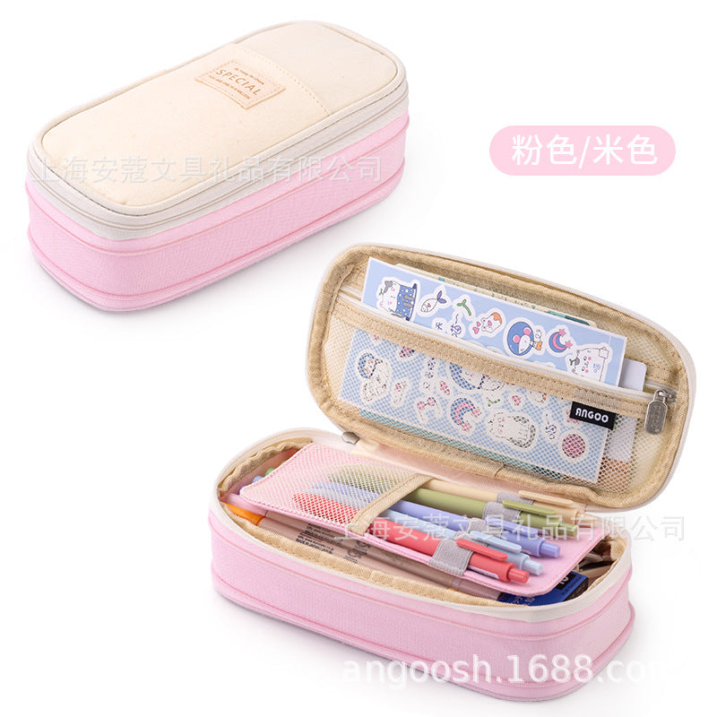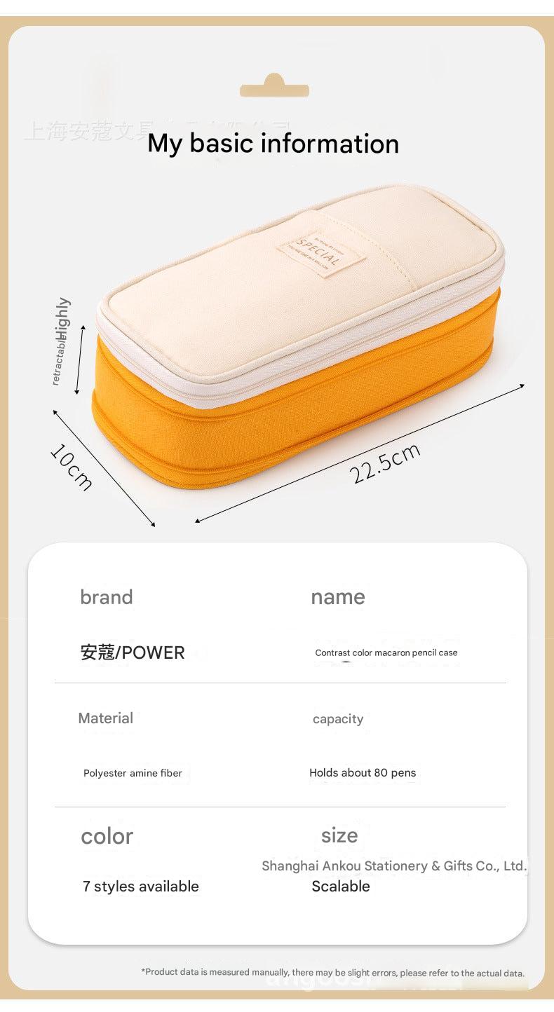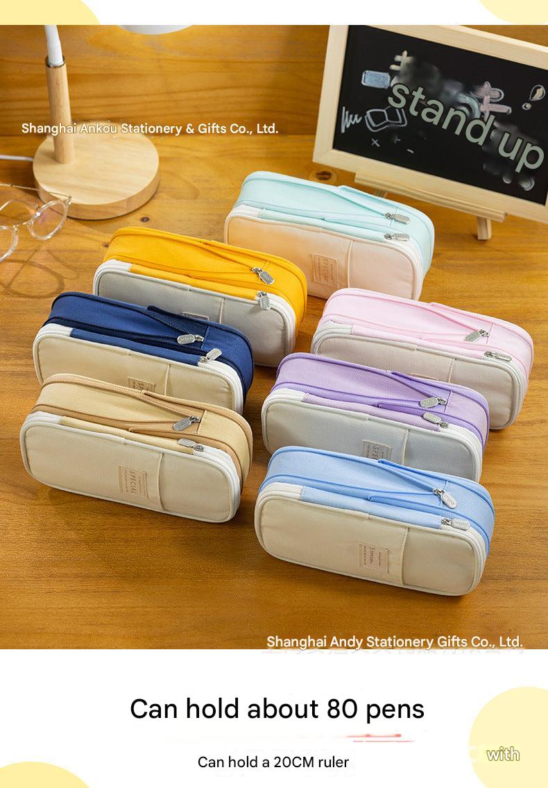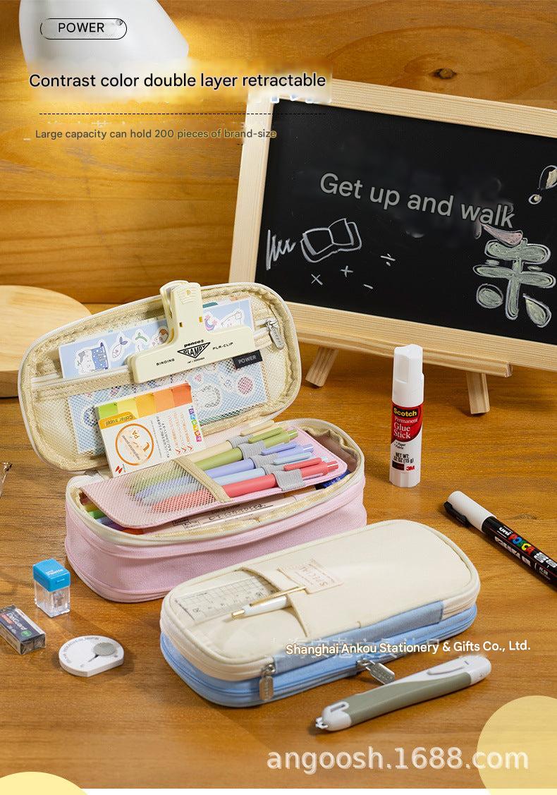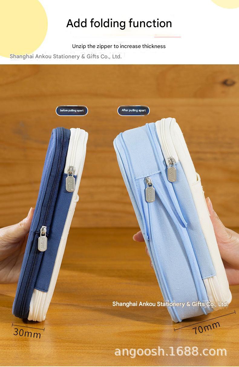 Angoo Color-Block Transforming Pencil Case - Large Capacity, Double-Layer Zipper, Creative Stationary Box for Men and Women