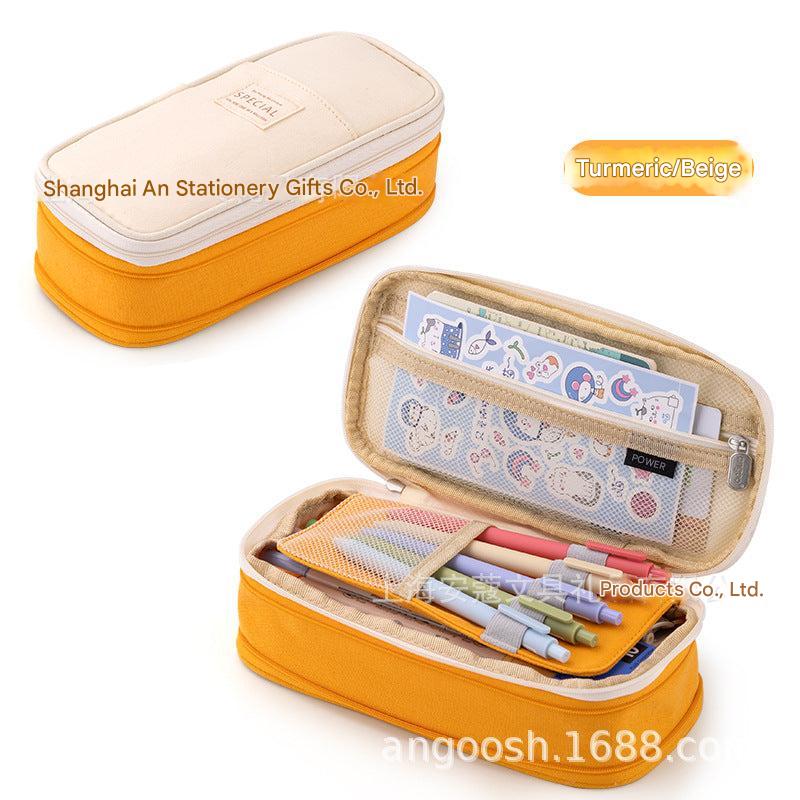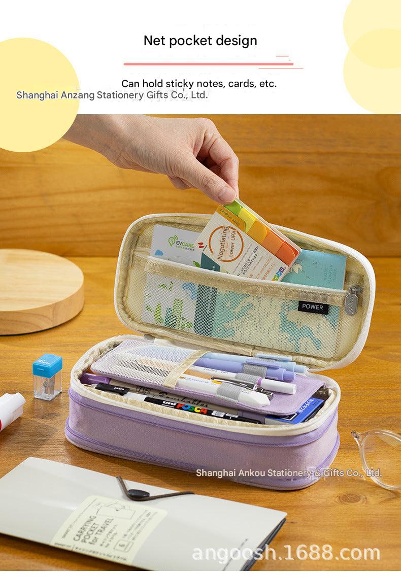 • Large Capacity: Spacious interior with double-layer storage, ideal for a variety of stationery items from pens to calculators.