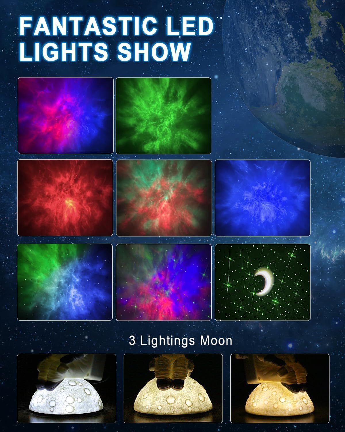 • Space-Saving Design: Compact astronaut themed projector fits seamlessly into any decorating style.