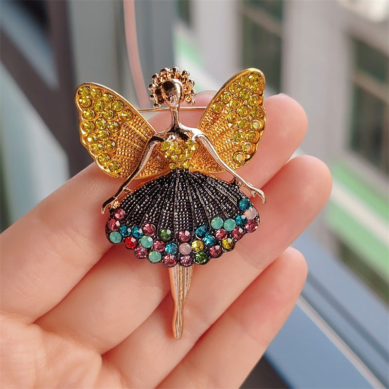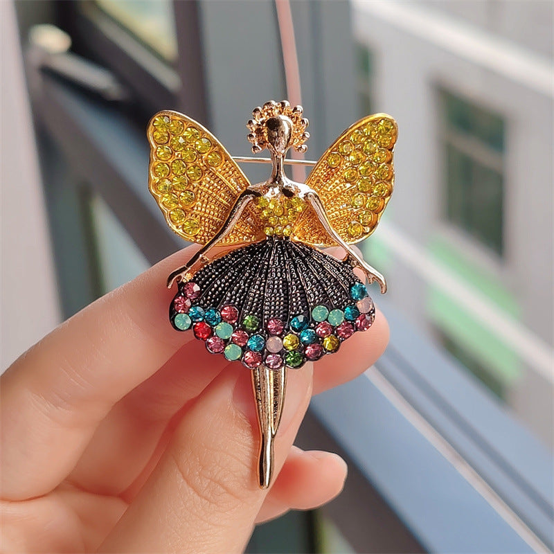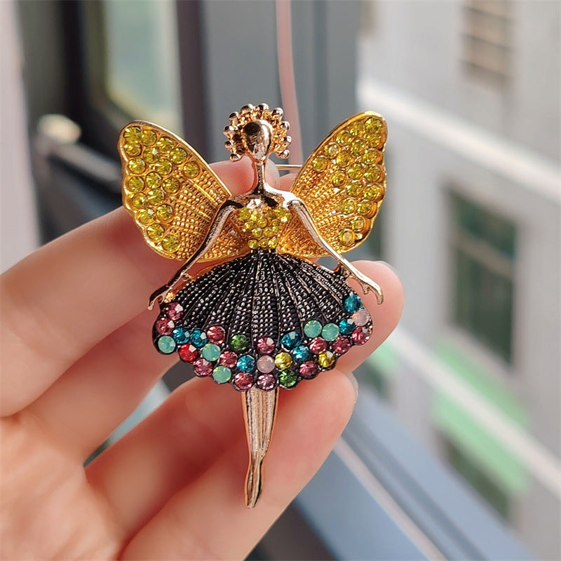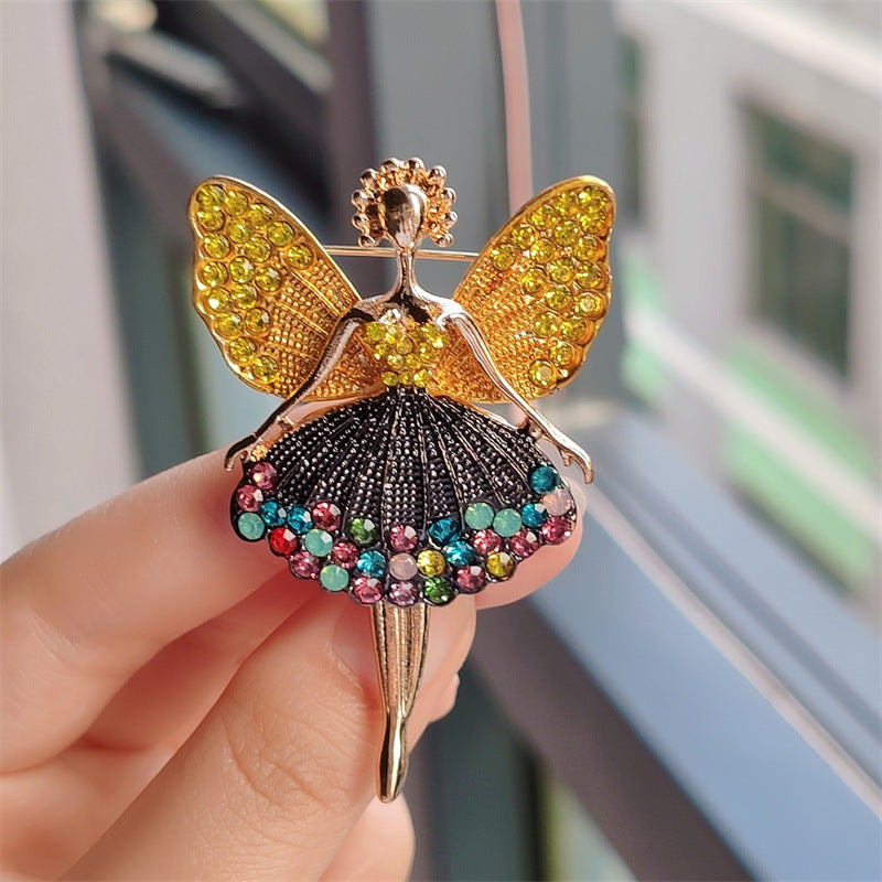 Charming Alloy Rhinestone Ballet Girl Brooch - Elegant Accessories for Women