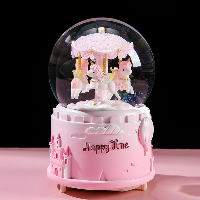 carousel crystal globe music box pink color