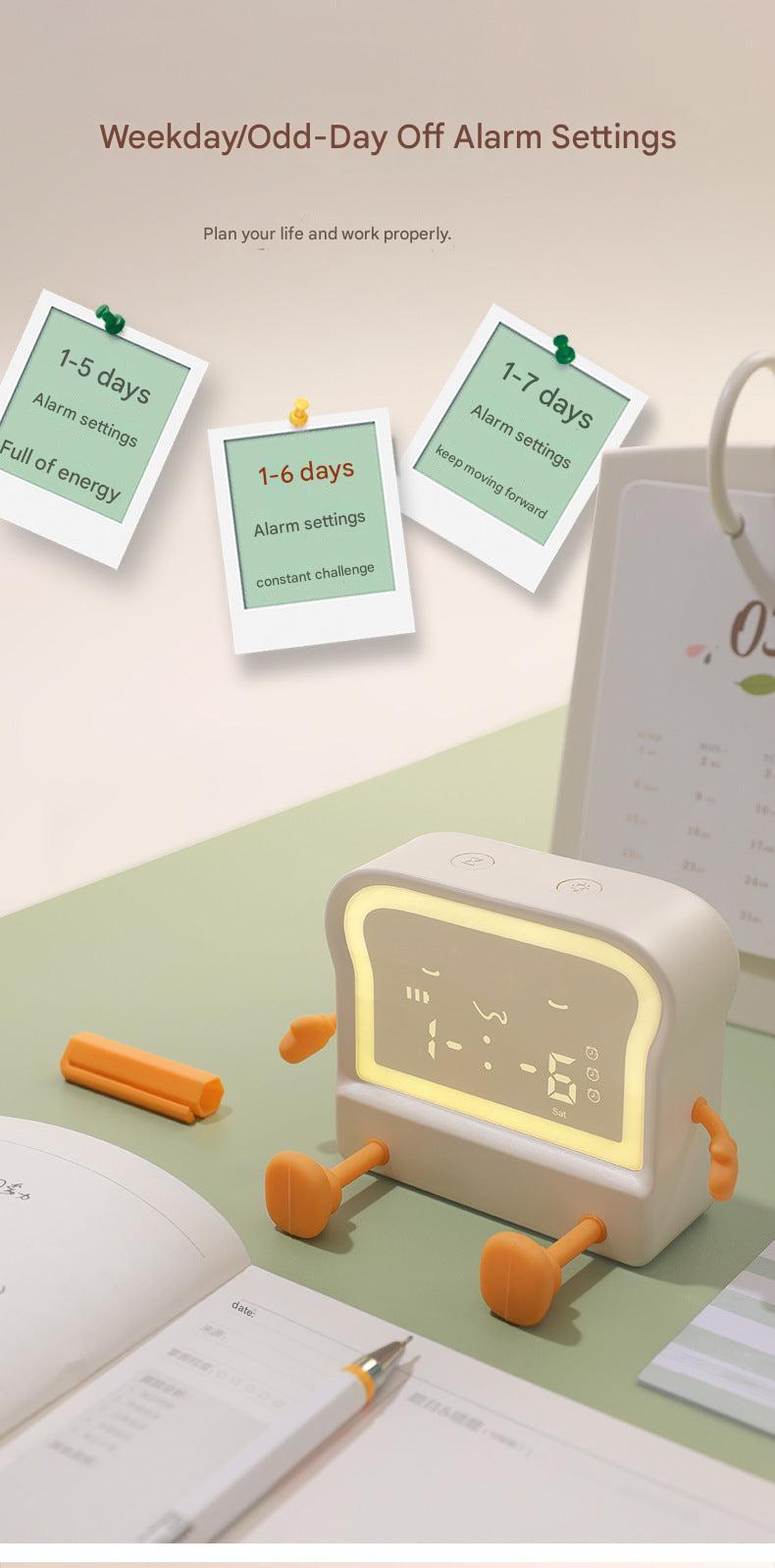 Streamline your daily routine with our Alarm Clock featuring USB charging capabilities and a vibrant LED display. Not just for telling time, this clock includes a built-in calendar and timer to assist with schedule management, making it perfect for both kids and adults. It’s designed with a soft night light feature, providing just the right amount of illumination without disturbing sleep. Set in a visually appealing cartoon-inspired design, it combines functionality with style and is available in two chic colors: crisp white and cozy coffee. Perfect as a bedside companion or a charming office accessory, it is an essential for efficient time management and a cozy atmosphere.