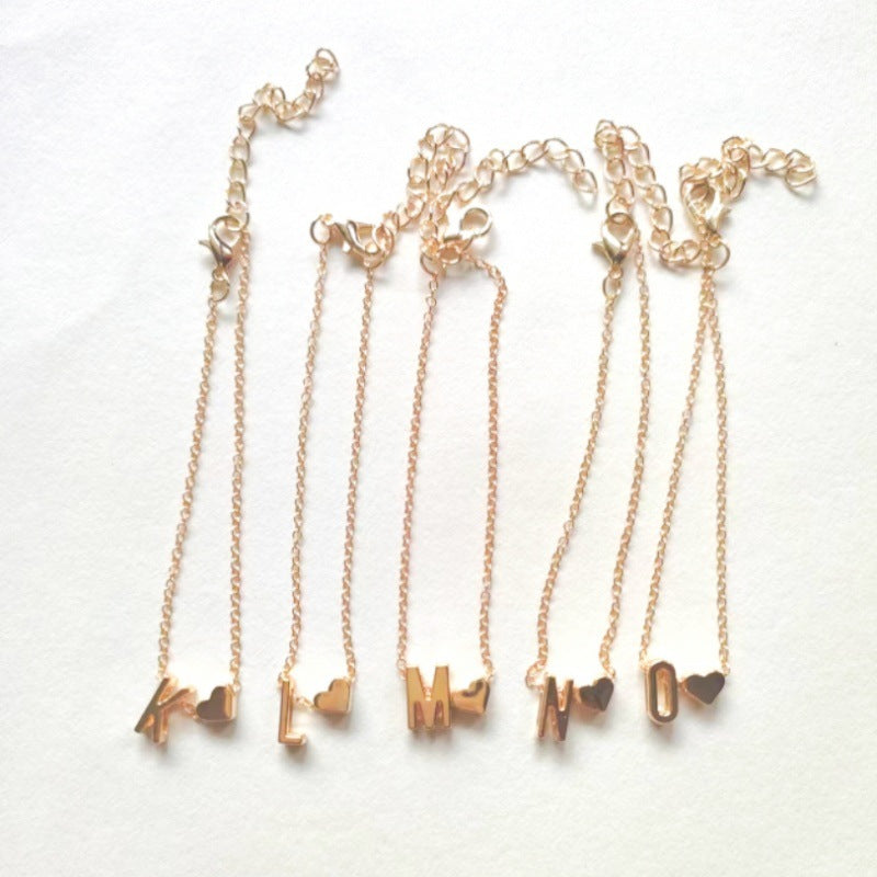 Chic Alphabet Heart Bracelet for Women - Personalized English Letter Fashion Jewelry in Gold and Silver