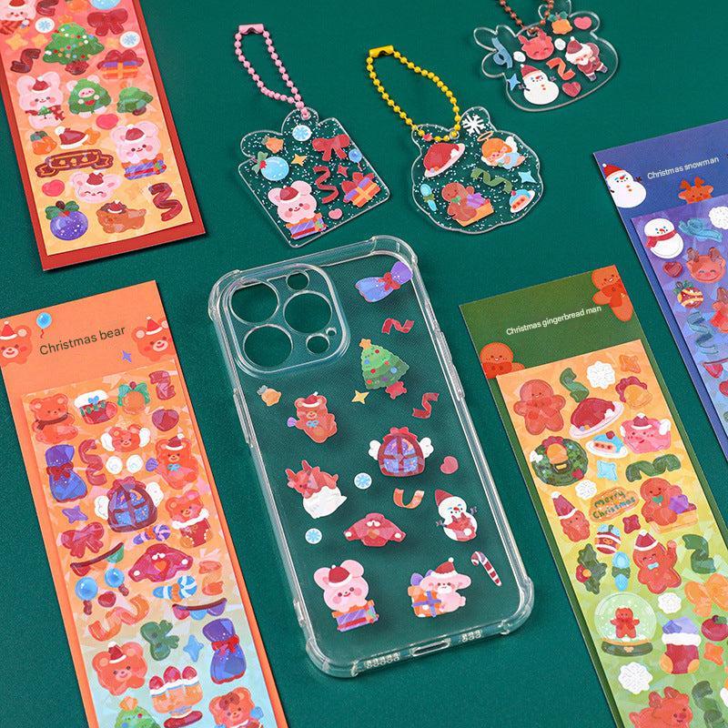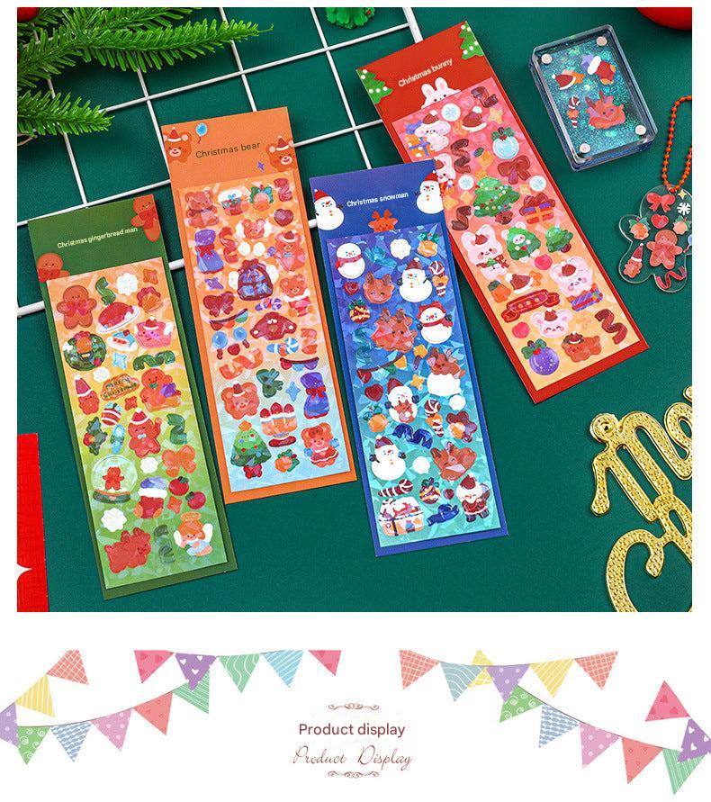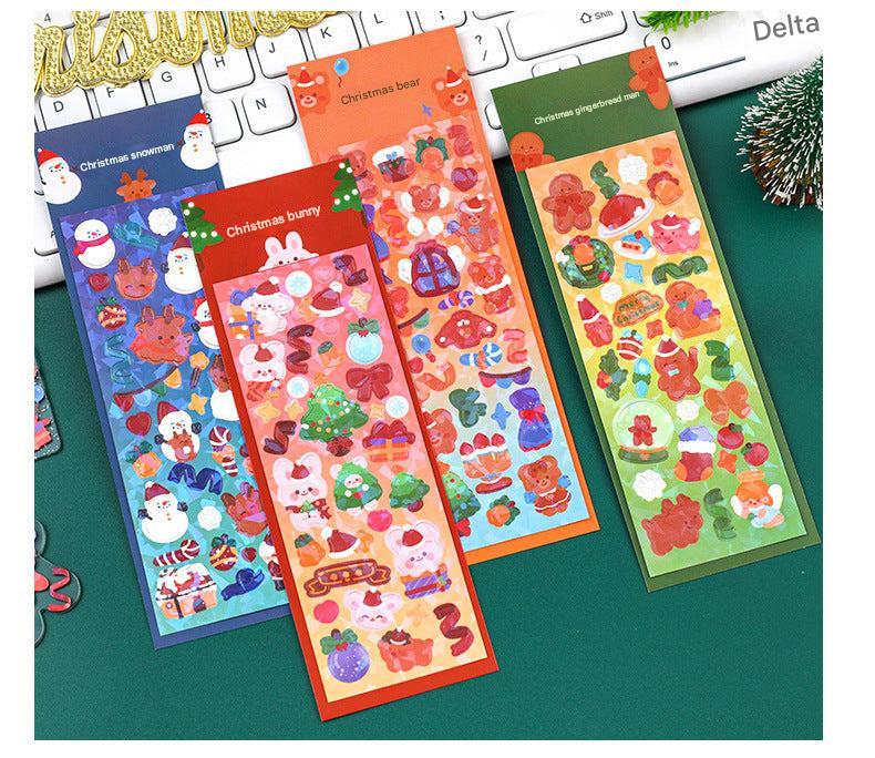 Christmas Themed Sticker Set Featuring Cute Characters: Gingerbread Man, Snowman, Teddy, and Bunny