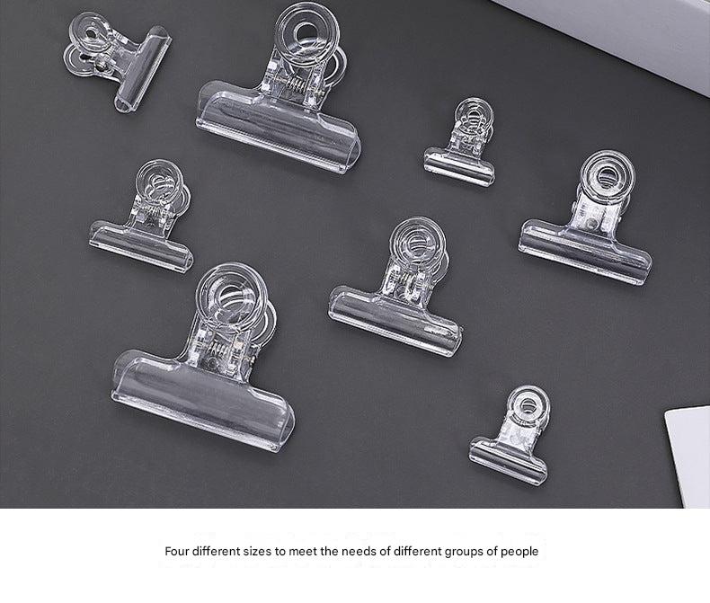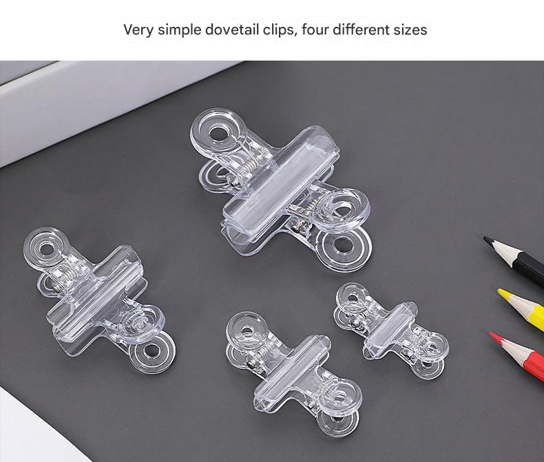 Clear Tail Clip Set - Multipurpose Mini Clamps for School and Office Use, 22mm to 50mm Sizes, Transparent Plastic