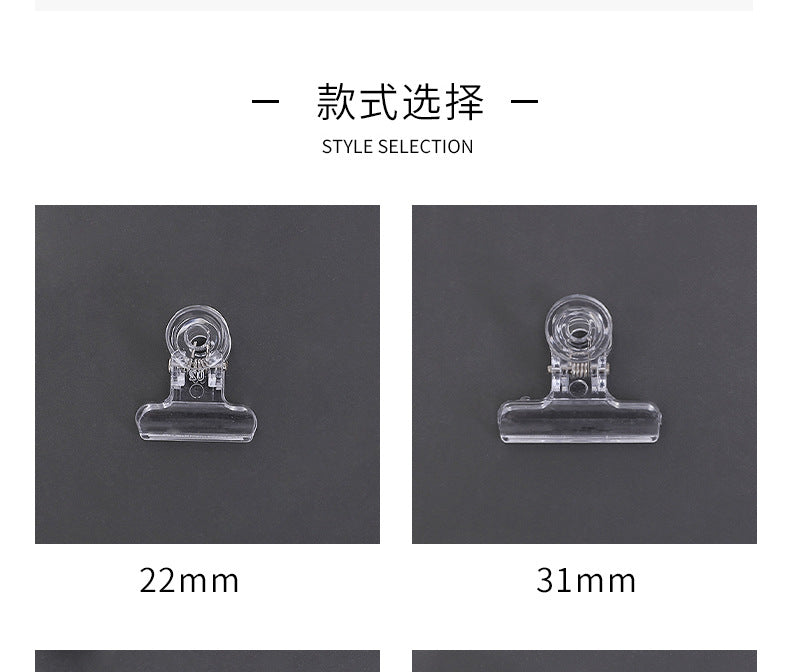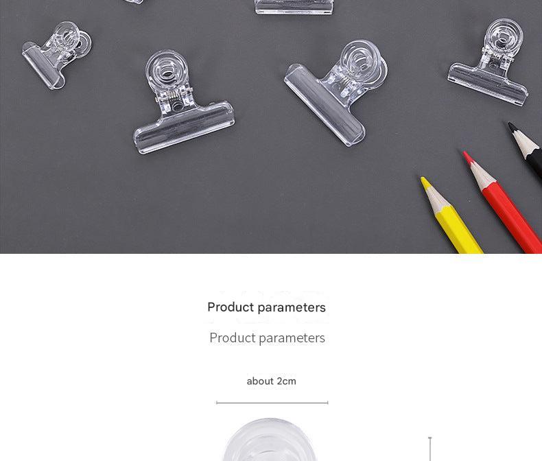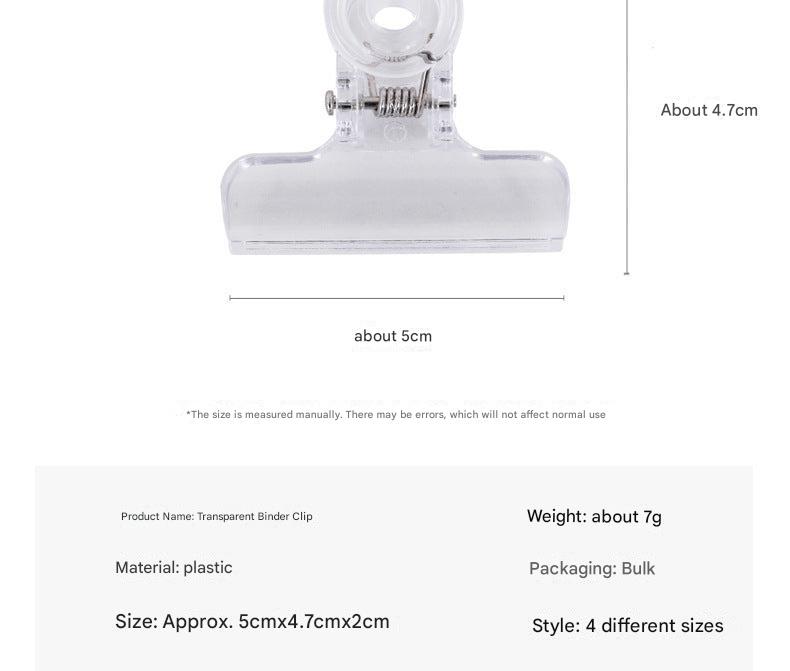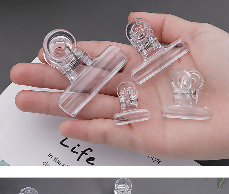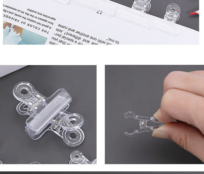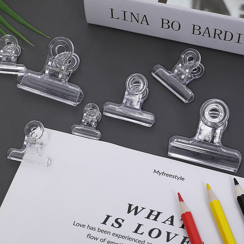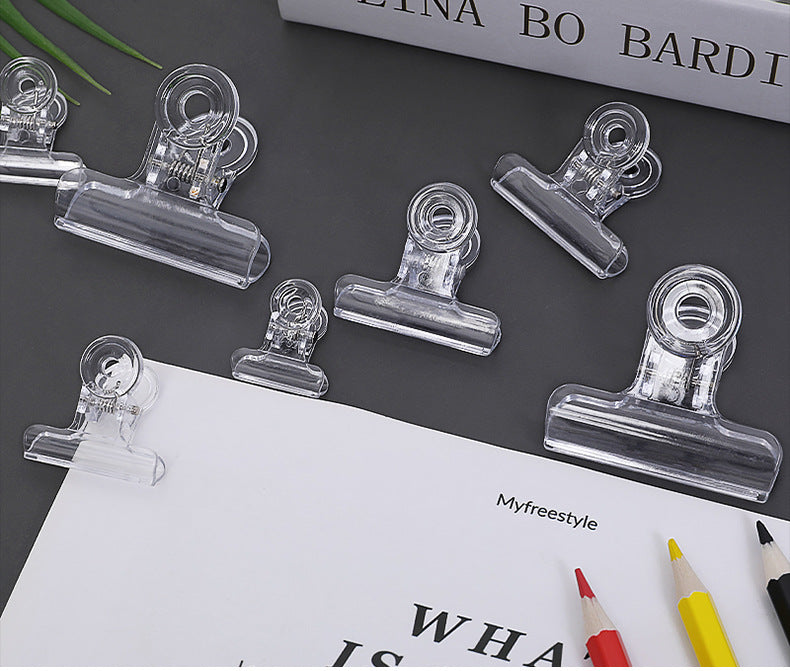 Elevate your organizational tools with our Clear Tail Clip Set. Each clip is crafted from durable, transparent plastic that doesn't obscure important information and adds a touch of elegance to your documents. The variety of sizes ranging from 22mm to 50mm makes these clips incredibly versatile, perfect for everything from securing important office documents to keeping snack bags closed in the kitchen. Their lightweight design makes them easy to handle, while their strong grip ensures your items are securely fastened without damage.
