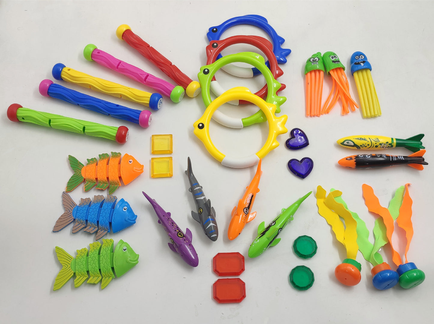 • Entertaining Underwater Set: Includes colorful diving sticks, fish, and shiny gemstones, perfect for ages 4-6.