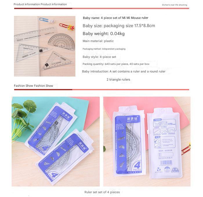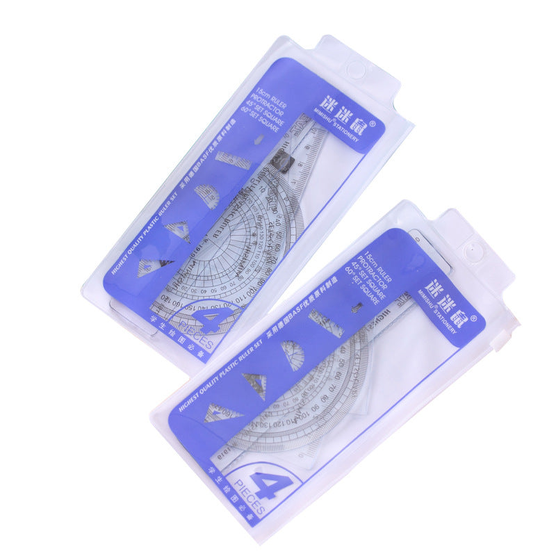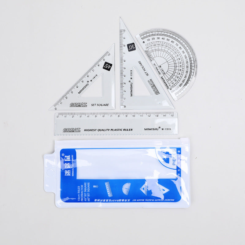Enhance your academic or professional drafting tools with our Compact Student Geometry Set. This 4-piece kit includes essential tools like a 15cm straight ruler and triangle rulers, all made from clear, durable plastic. Designed for ease of use and precision, these tools allow for visible measurements over documents or drawings, ensuring accuracy in every project. Lightweight and compact, this set is perfect for students of all ages, fitting easily into a backpack or desk drawer. Overcome your complex drawing challenges with tools designed for user-friendly functionality.