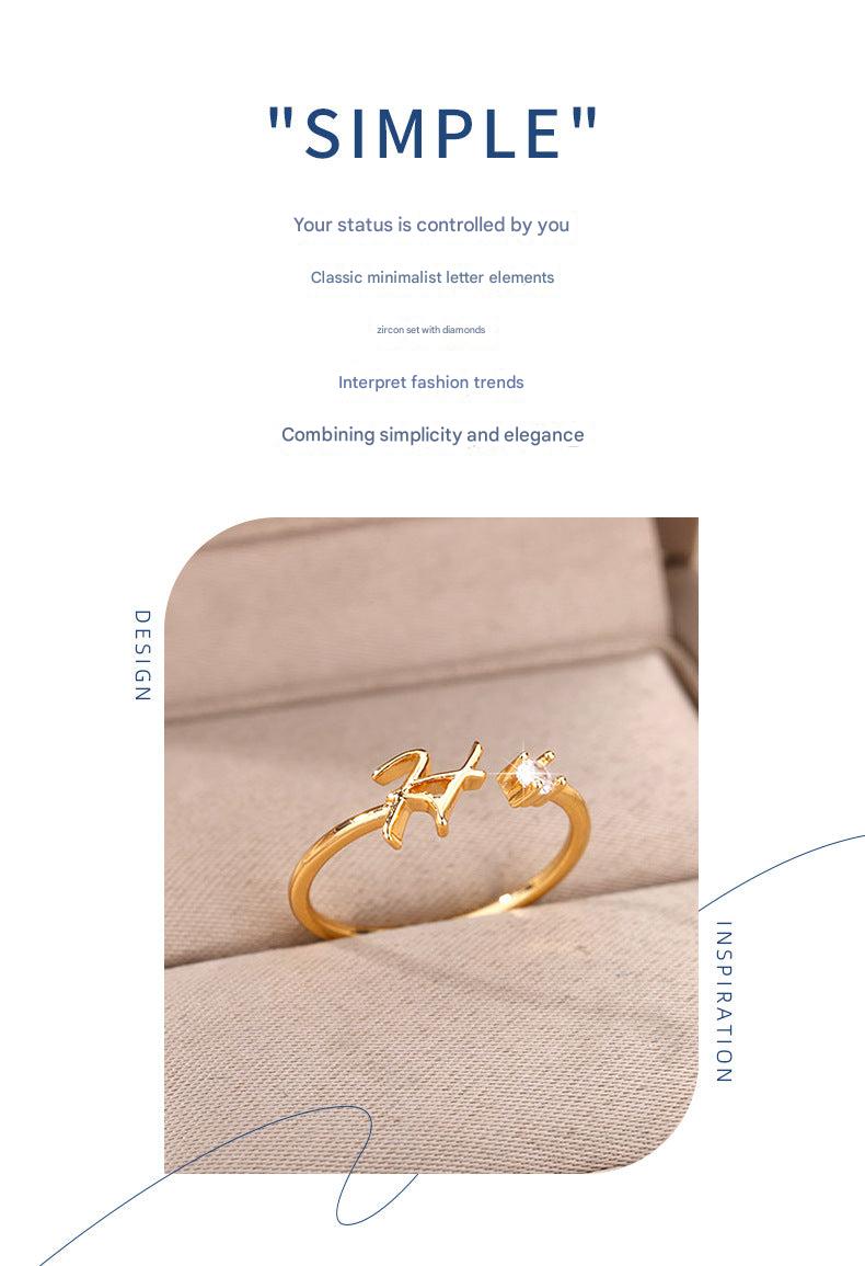 Creative 18k Gold Plated Alphabet Ring - Unique Customizable Design for Men and Women