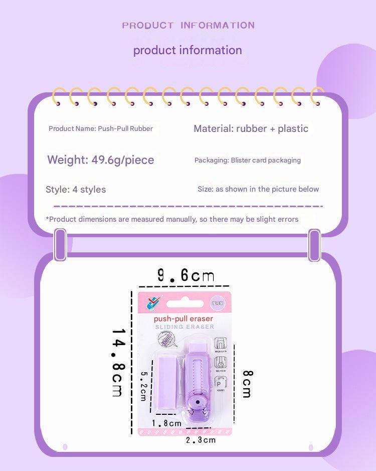 The Creative Macaron Sliding Eraser combines functionality with aesthetic appeal, featuring bright, appealing pastel colors that add a touch of fun to everyday school tasks and artistic endeavors. Crafted from high-quality rubber, these erasers ensure a clean erase with minimal debris, making them perfect for both graphite and colored pencils. Each eraser is compact and portable, designed to be both a practical tool and a charming gift. Whether for a young student or a seasoned artist, these erasers make a thoughtful present for any occasion.