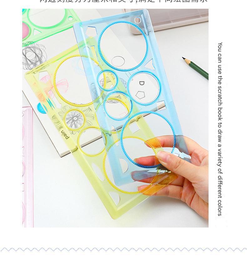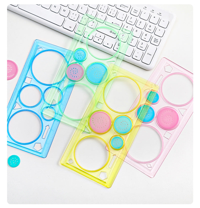 This Creative Multi-Purpose Ruler is an essential tool for every young student and child who loves to draw and measure. It features various drawing stencils that allow kids to unleash their creativity in school projects or arts and crafts. Constructed from eco-friendly plastic, this ruler is safe for children's use and built to last. Its lightweight design, weighing only 23g, makes it highly portable and easy to use on-the-go. Available in a range of vibrant colors (blue, green, pink, yellow), this ruler can brighten any task and stimulate imagination. It's not just for measurement; it's a tool to inspire and facilitate learning and creativity.
