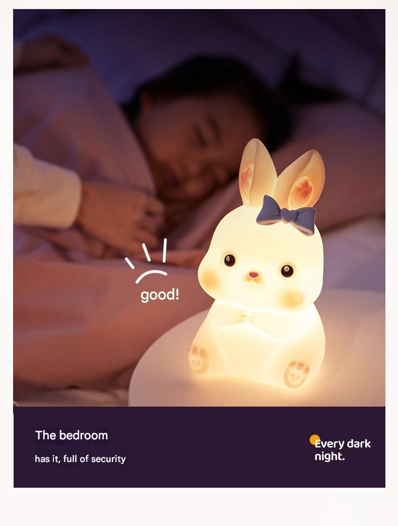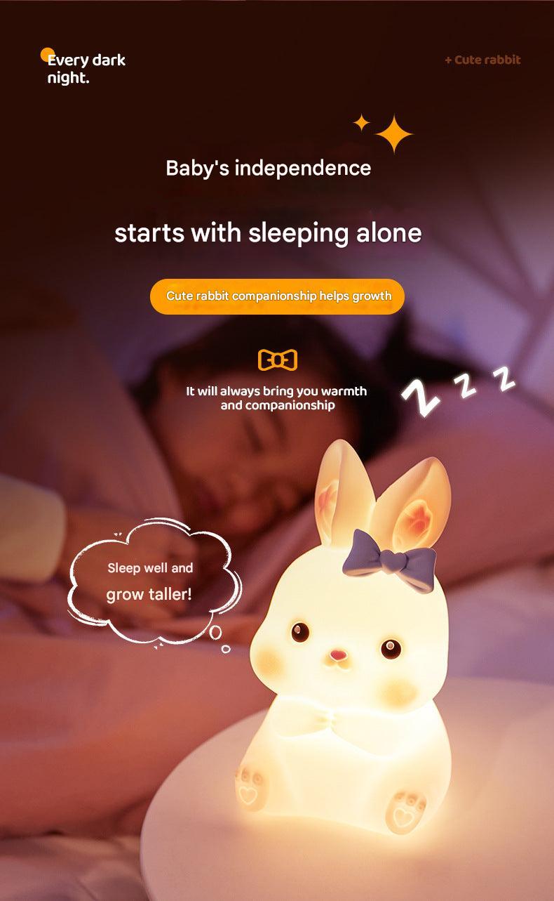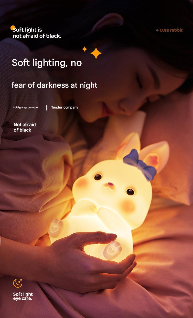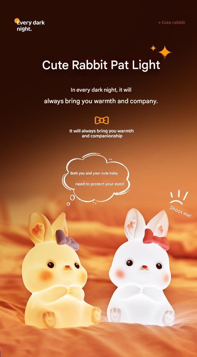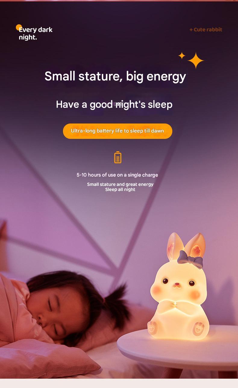 Cute Bunny LED Night Light for Kids with Tap Control - Soft Silicone, USB Rechargeable Bedroom Sleep Lamp