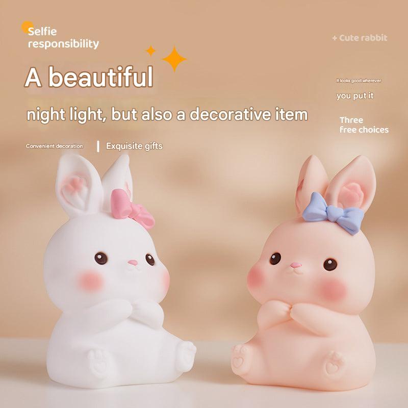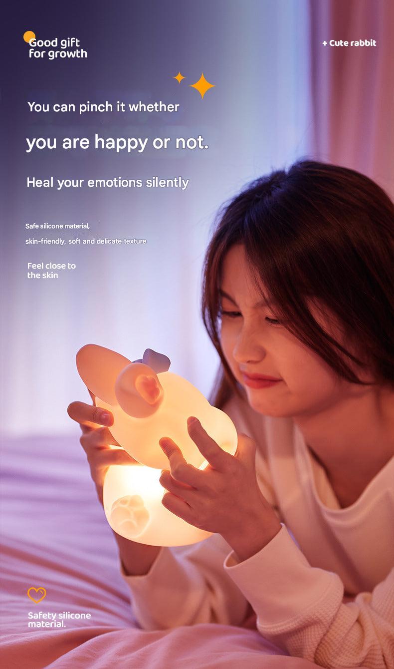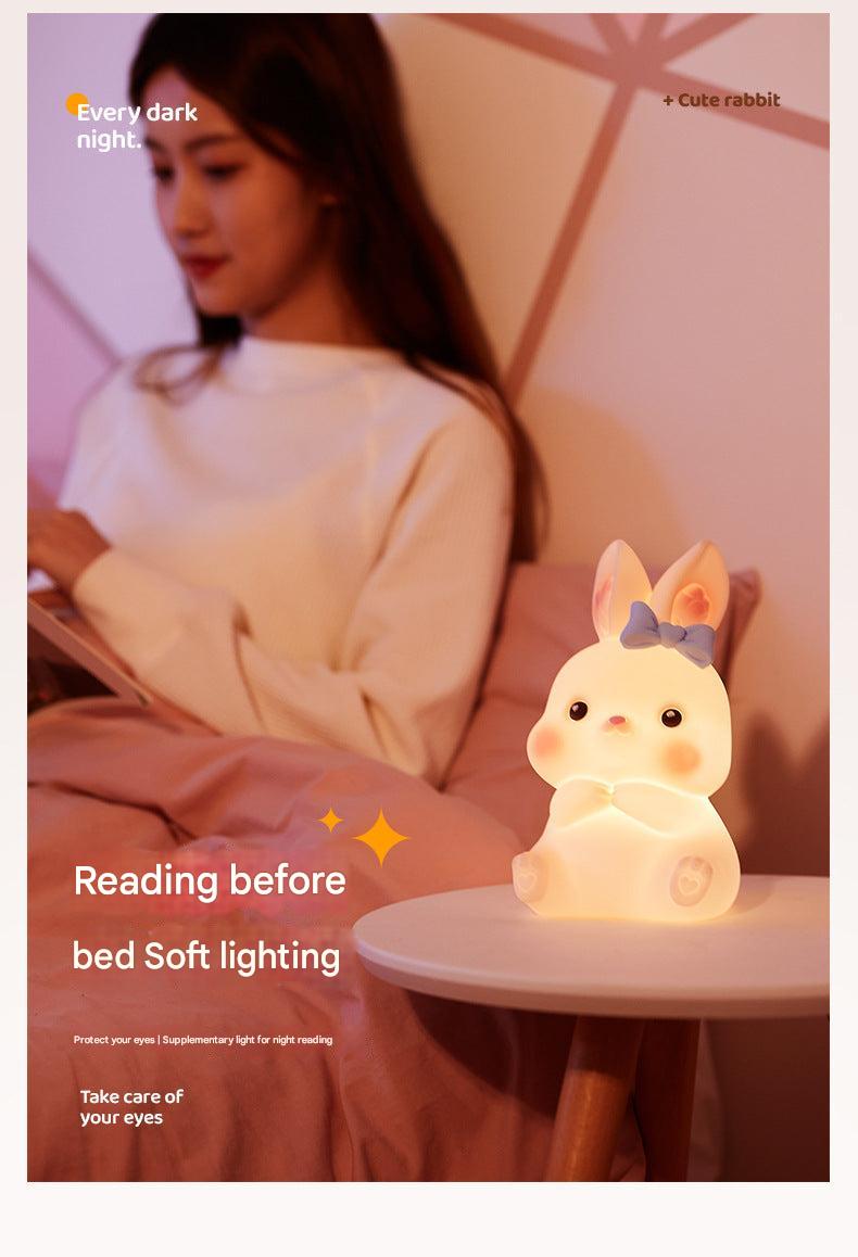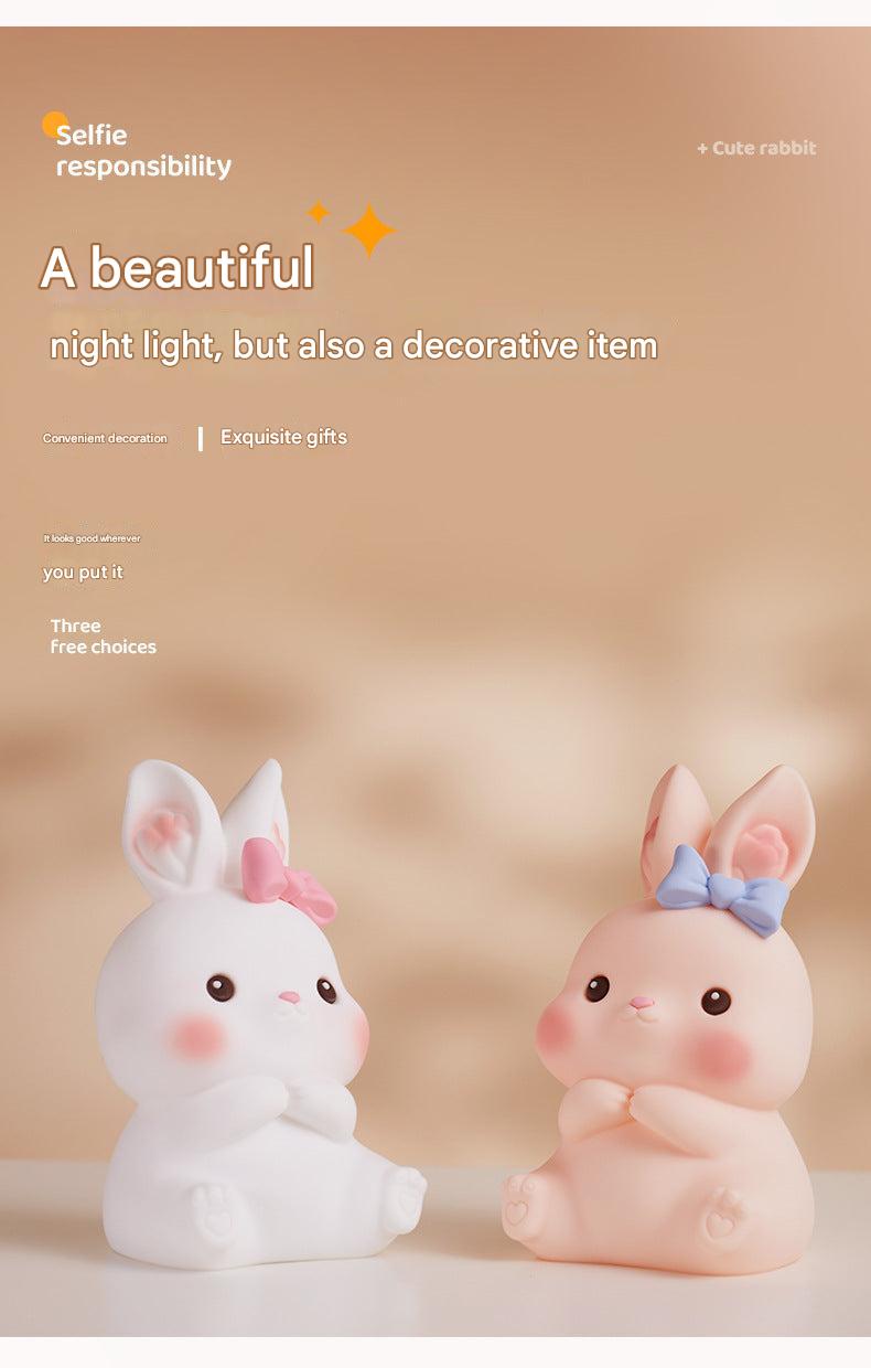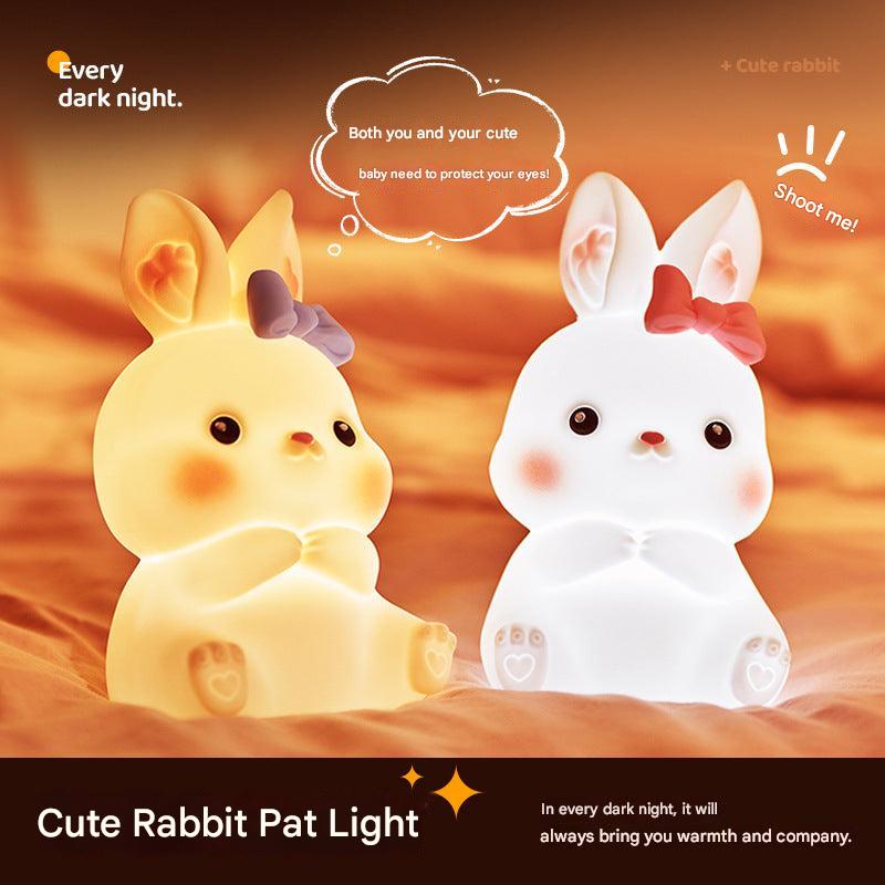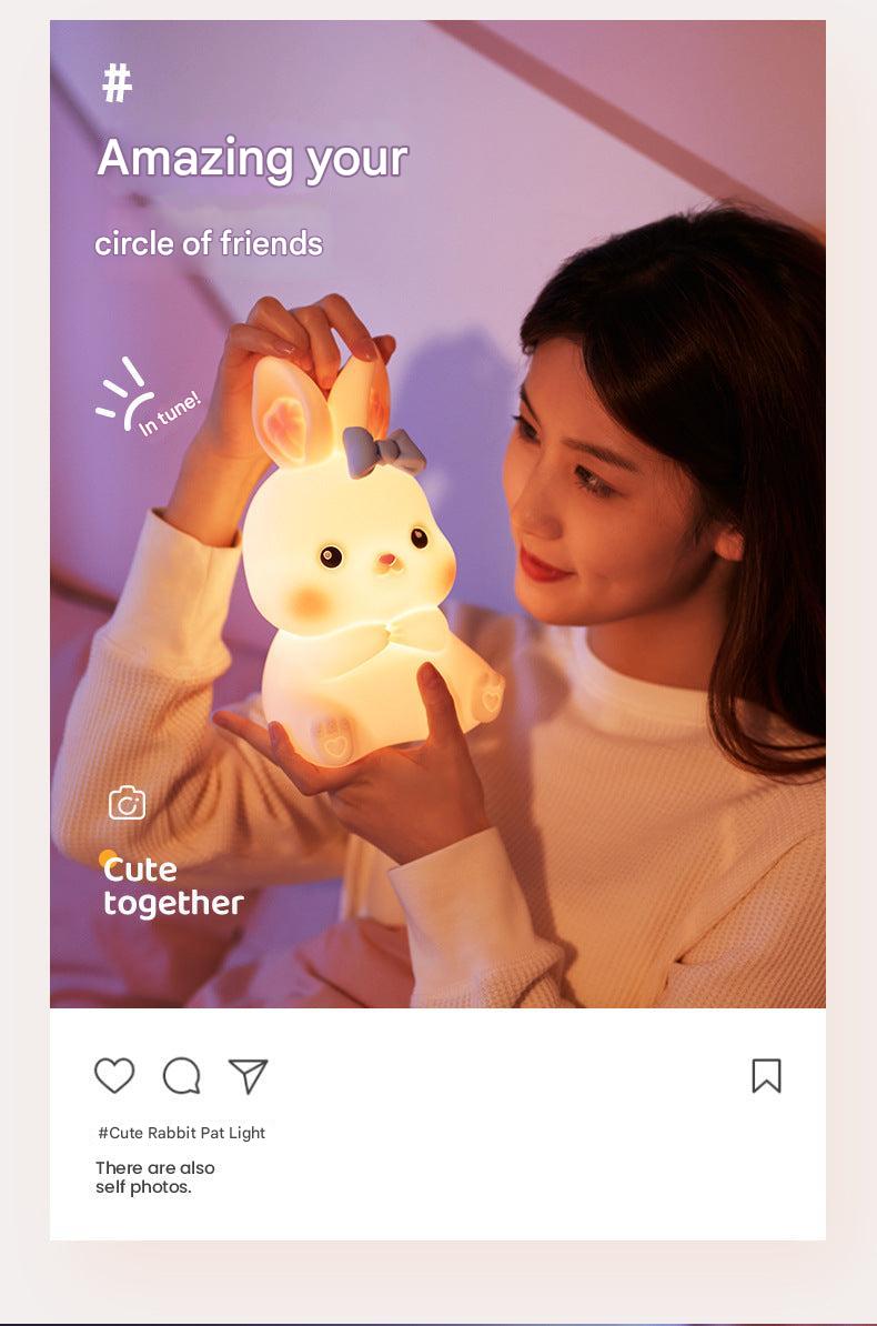 Cute Bunny LED Night Light for Kids with Tap Control - Soft Silicone, USB Rechargeable Bedroom Sleep Lamp