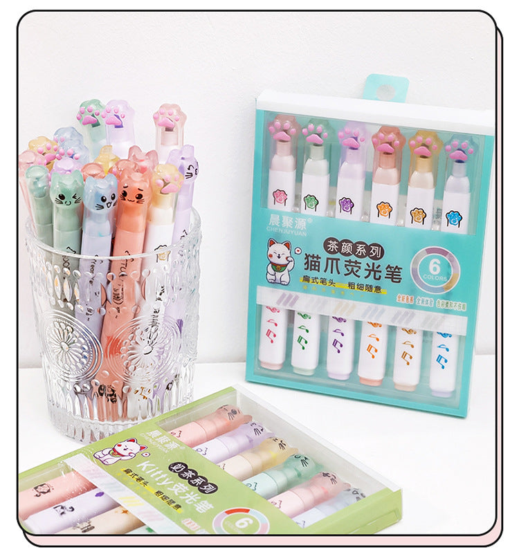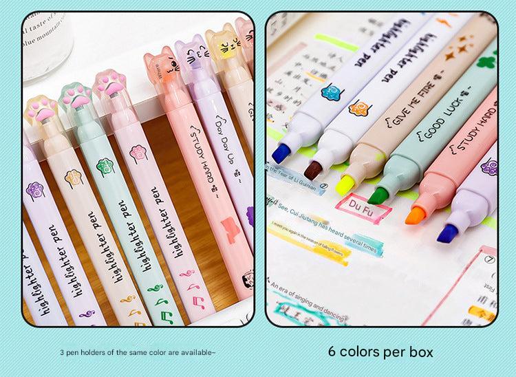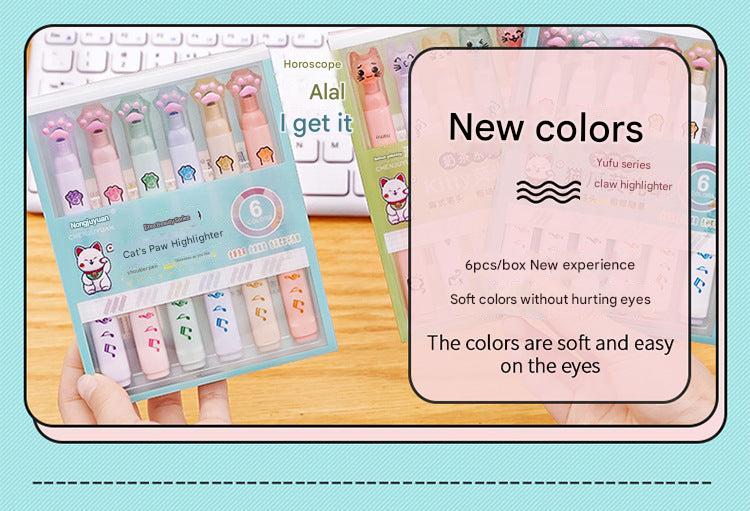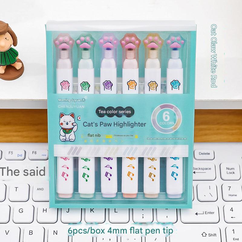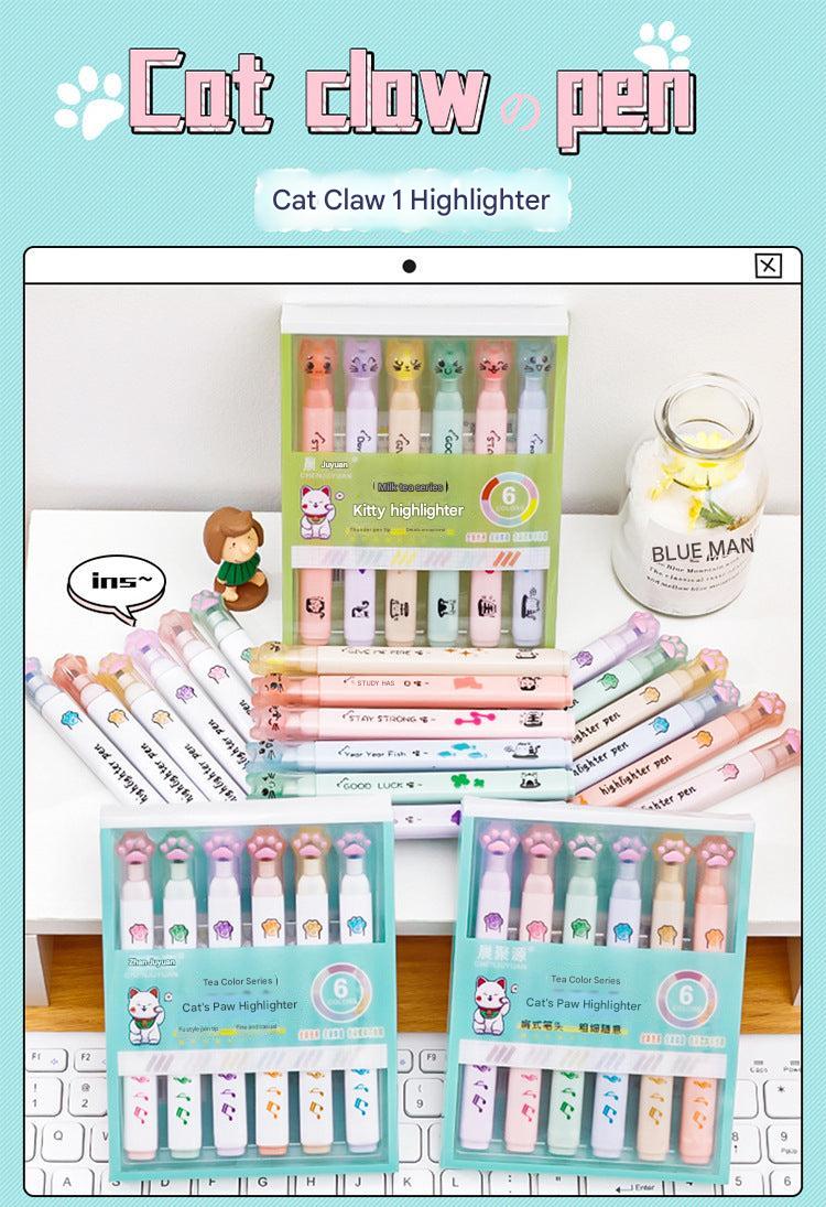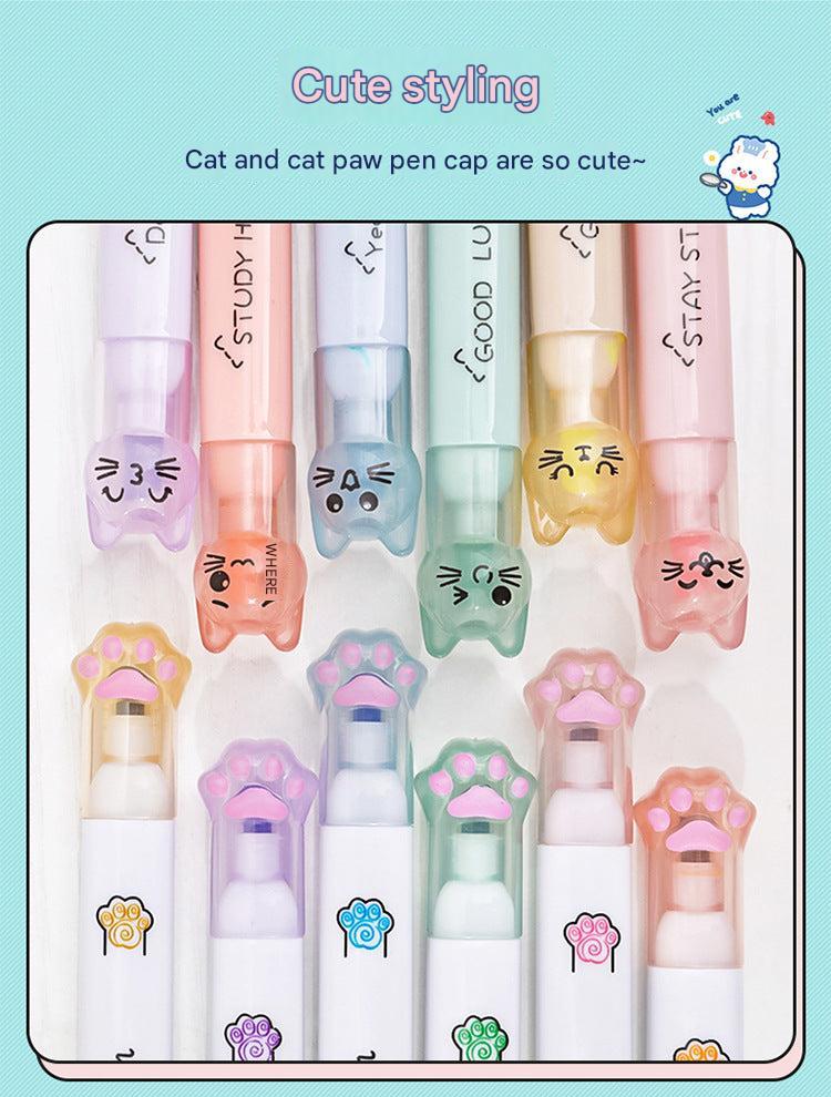 Cute Cat Paw Fluorescent Highlighters Set for Students - Eye-Soothing Pastel Colors, Non-Toxic, Perfect for Notetaking and Journaling
