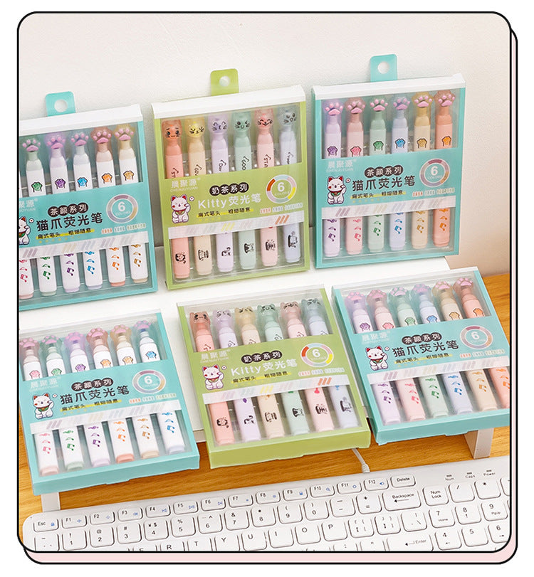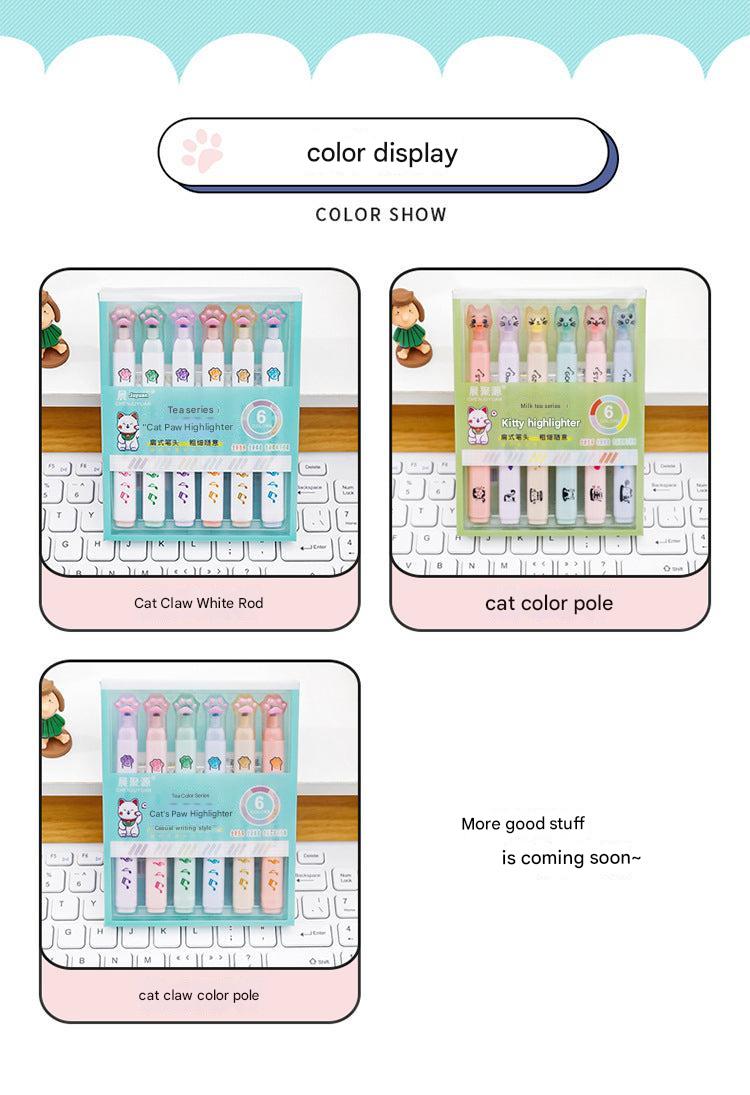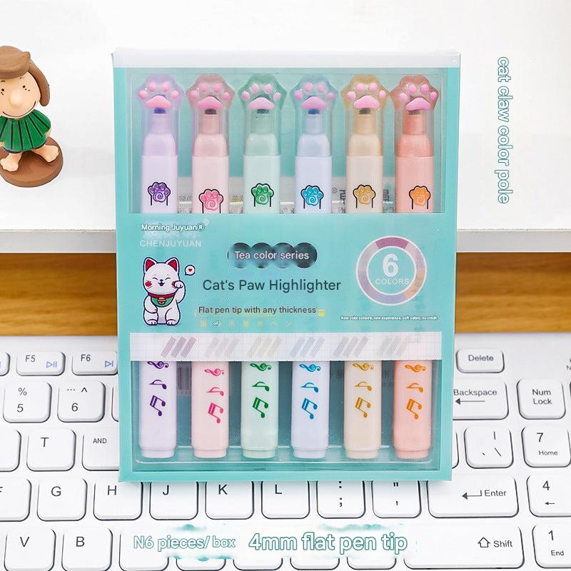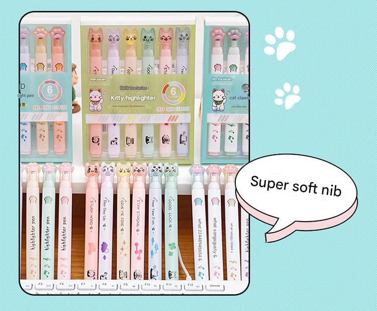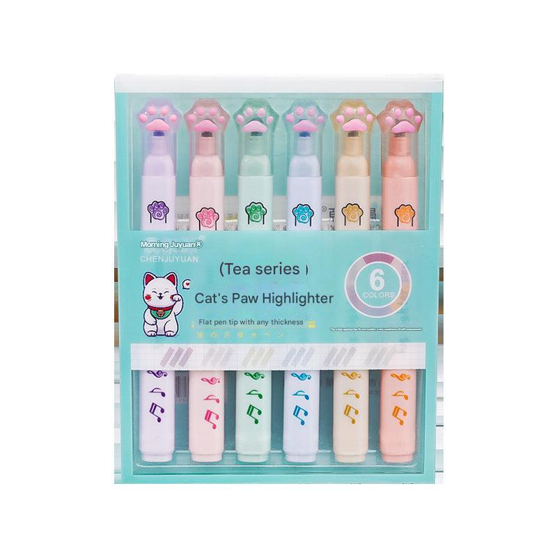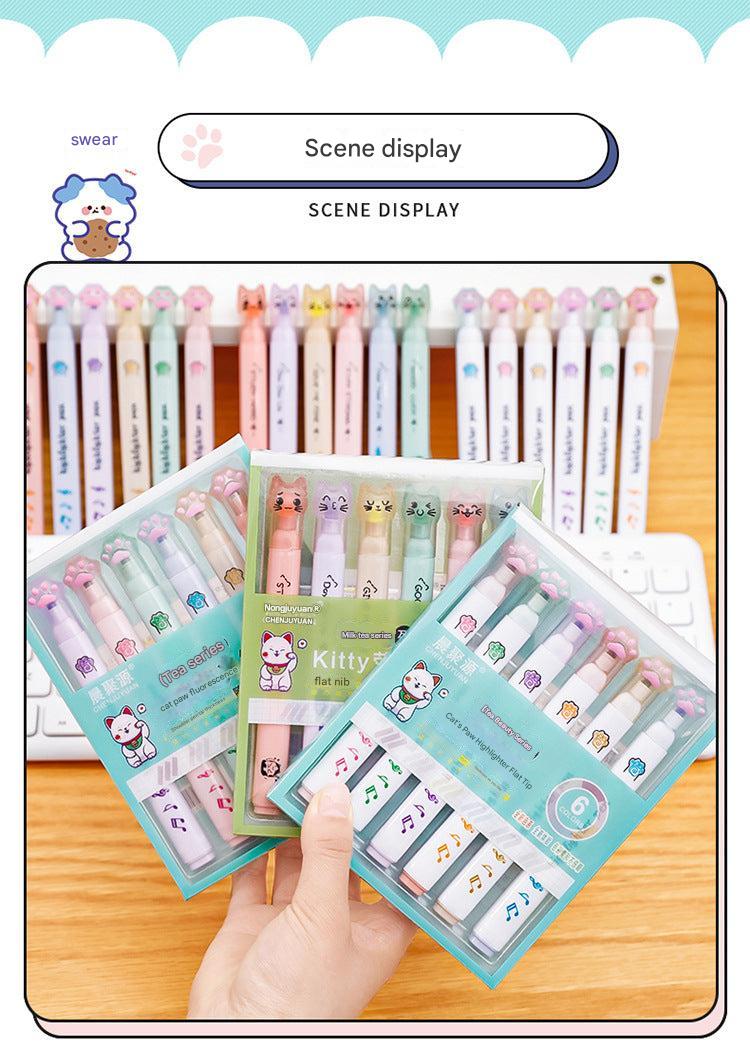 Cute Cat Paw Fluorescent Highlighters Set for Students - Eye-Soothing Pastel Colors, Non-Toxic, Perfect for Notetaking and Journaling