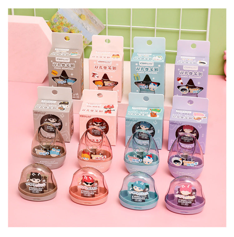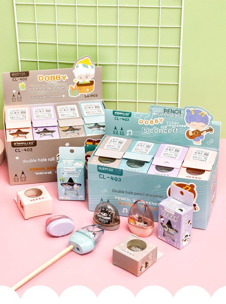 Cute Dual-Hole Pencil Sharpener for Kids - Cartoon-Themed, Mini Portable Sharpener for Students