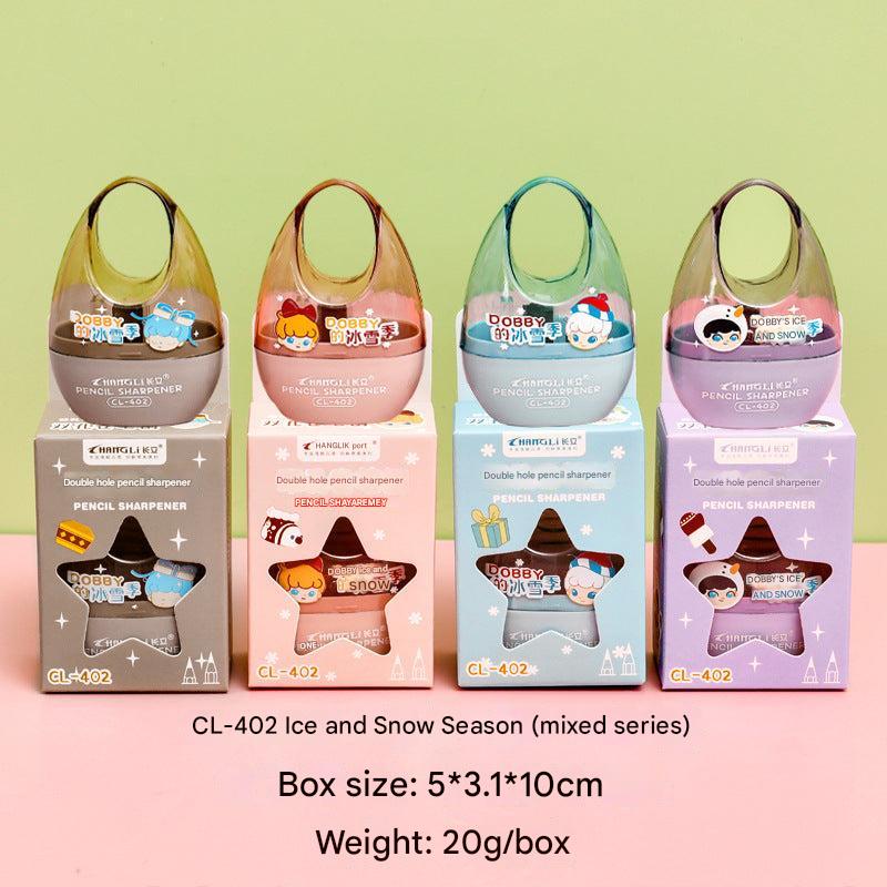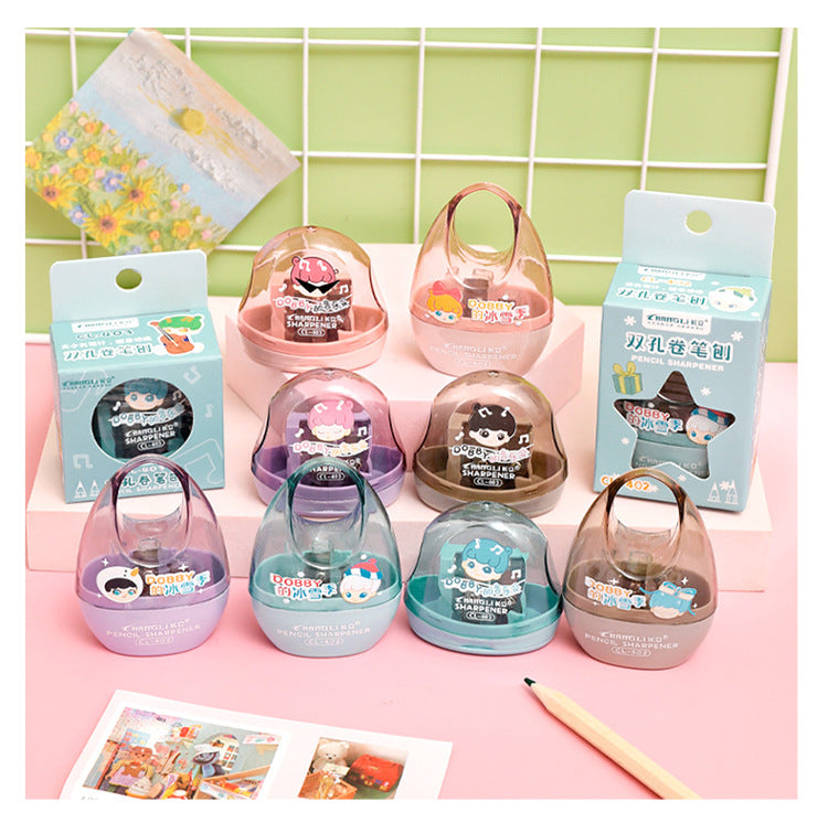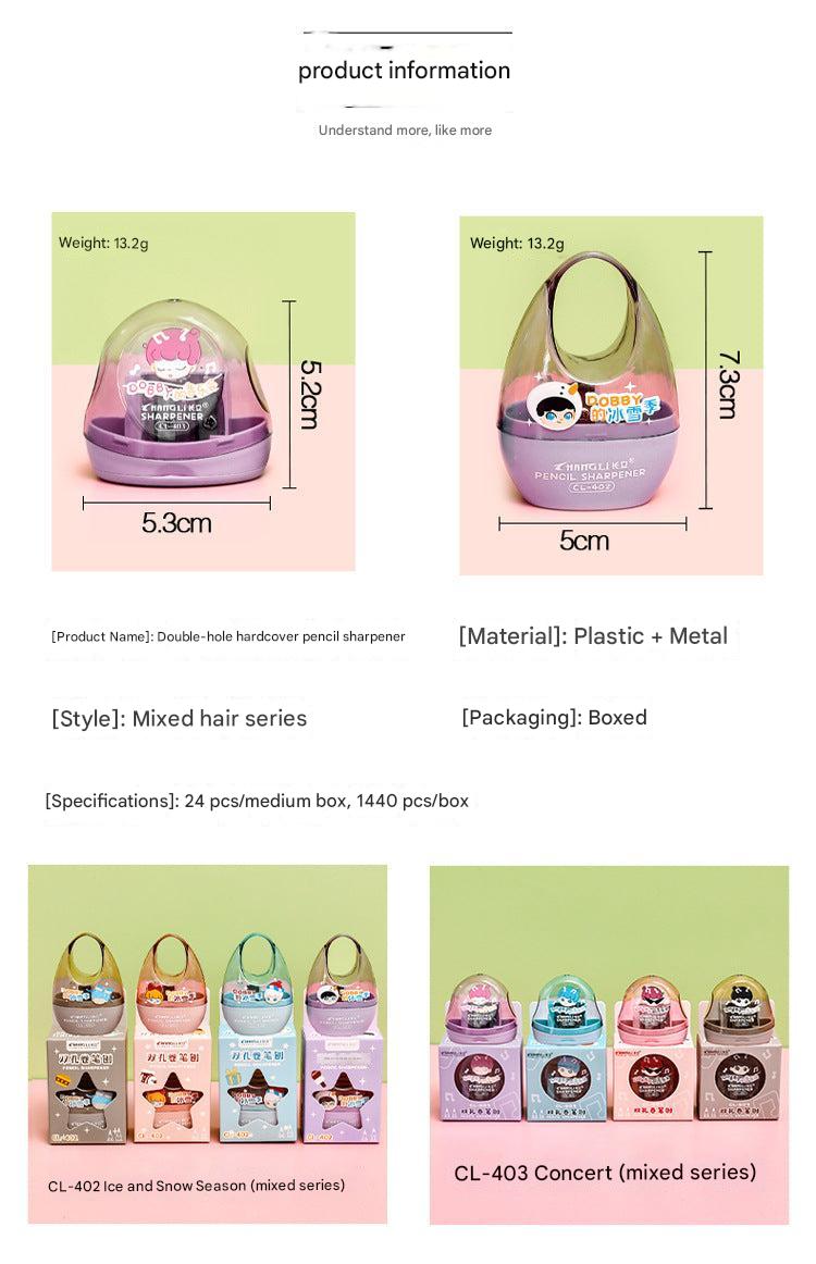 Introducing our Cute Dual-Hole Pencil Sharpener, tailor-made for children and students. Featuring vibrant, cartoonish designs, this sharpener not only appeals visually but is also highly functional. It's equipped with a dual-hole accommodating different pencil sizes, making it perfect for various drawing and writing utensils. Thanks to its compact and lightweight design, it can easily fit into any pencil case, desk drawer, or backpack, ensuring that sharp pencils are always at hand. Cleaning is a breeze with its detachable shavings container, simplifying maintenance and keeping your work area tidy. Designed with a manual turn mechanism, it offers a safe sharpening experience that is suitable for users of all ages. It's the perfect choice for gifting during school celebrations, birthdays, or any festive occasion!