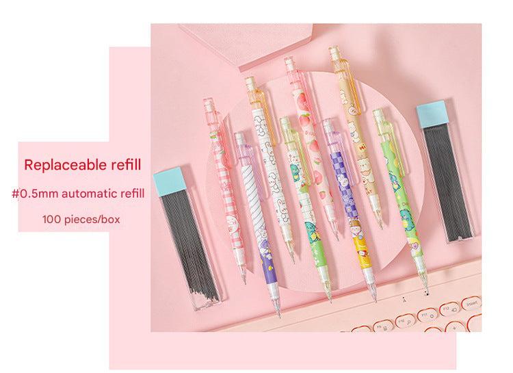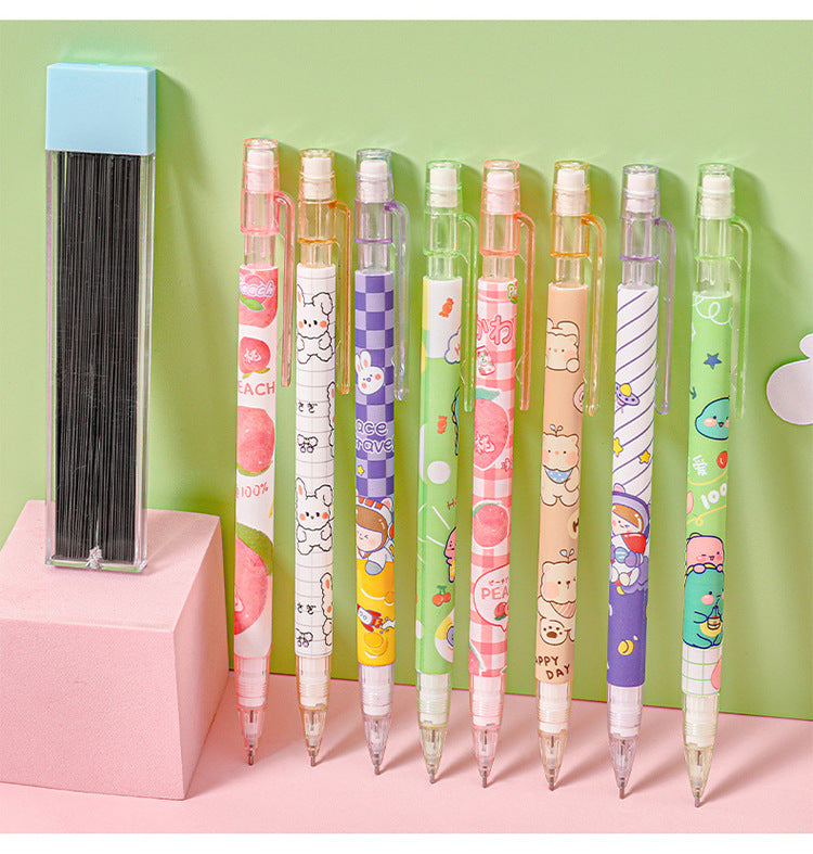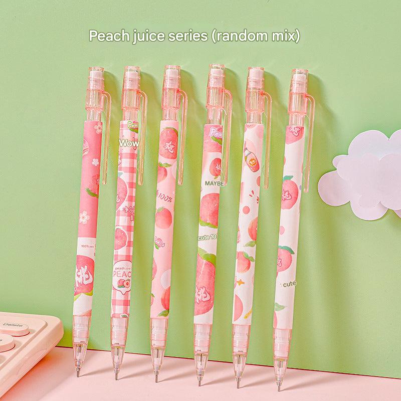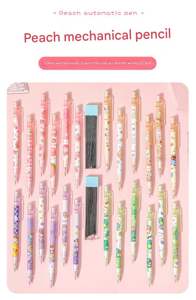 Cute Peach-Themed Mechanical Pencils for Kids - Colorful, Non-Sharpening Press Pencils