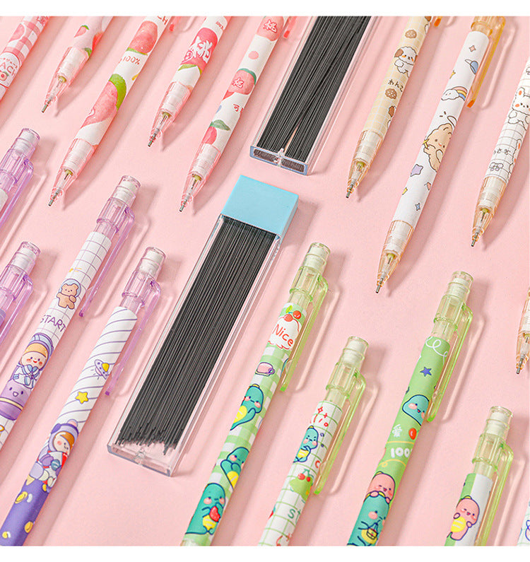 Enhance your child's writing experience with our Cute Peach-Themed Mechanical Pencils, designed not only for practicality but also to spark joy with their vibrant themes and easy-to-use mechanics. Each pencil features characters from different series like Purple Star or Tiny Dinosaur, making everyday writing and sketching fun! These mechanical pencils do not require sharpening, offering both convenience and time-saving benefits. The perfect gift for schoolchildren, these cute pencils celebrate all major holidays. Strengthen the joy of writing and drawing while your child develops fine motor skills with these charming pencils!