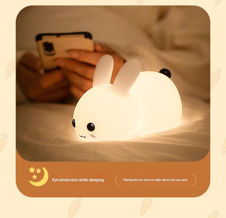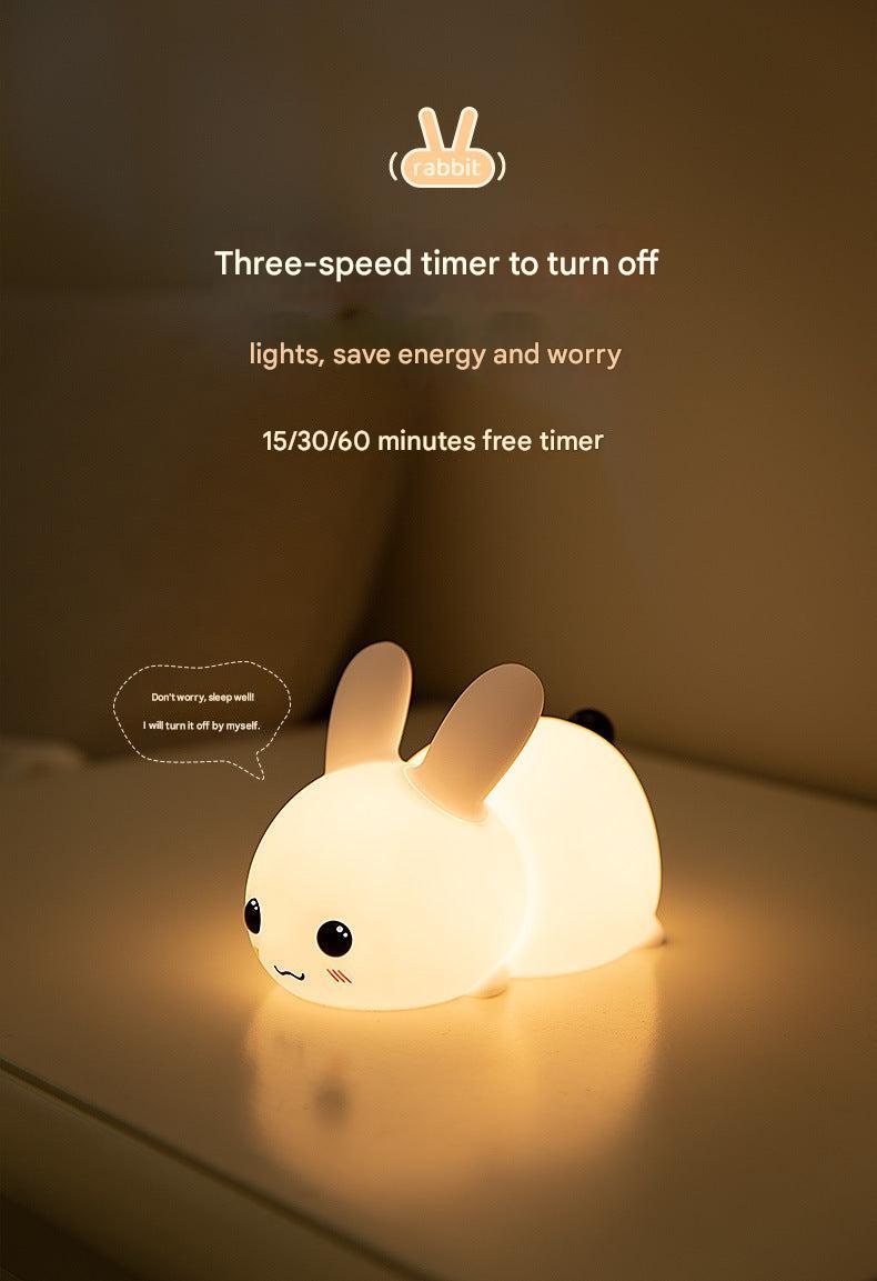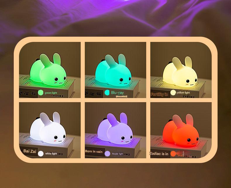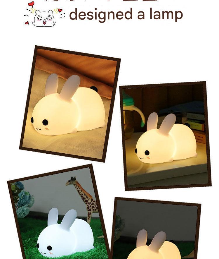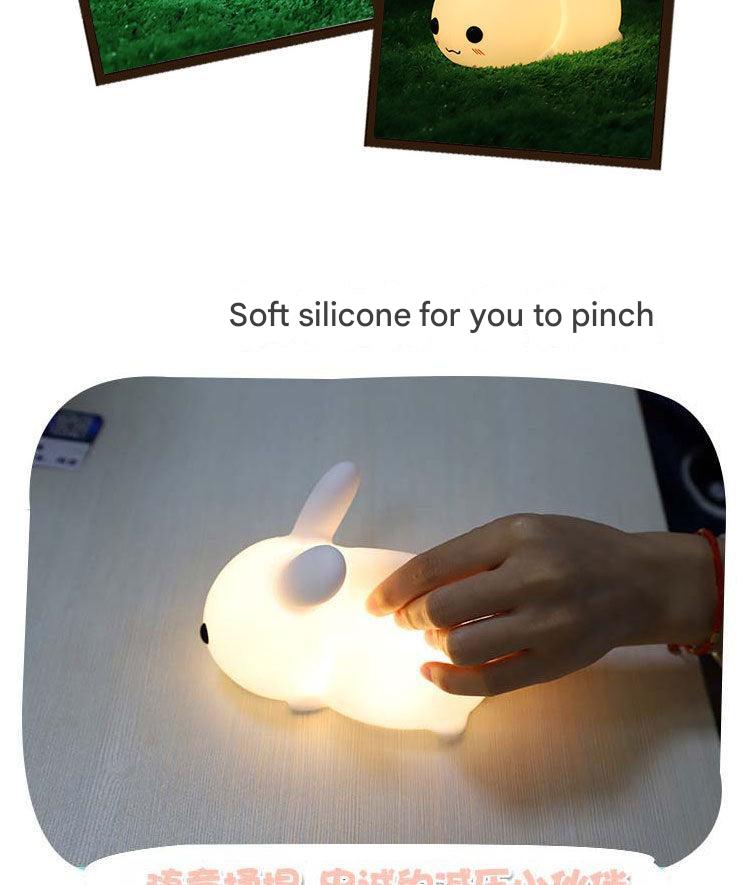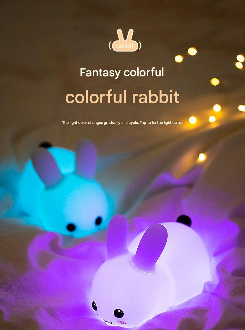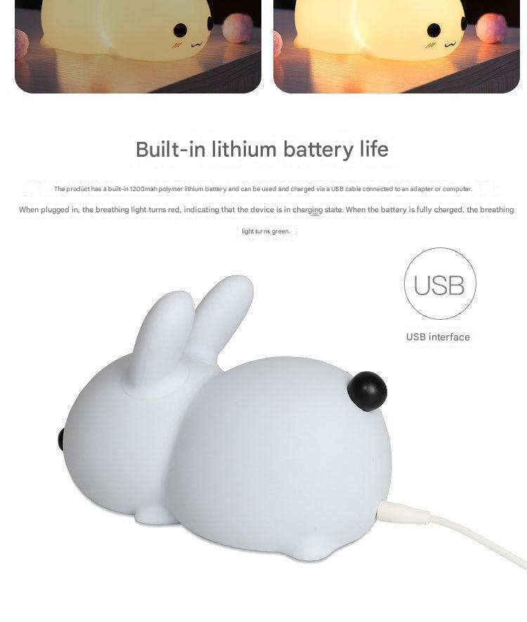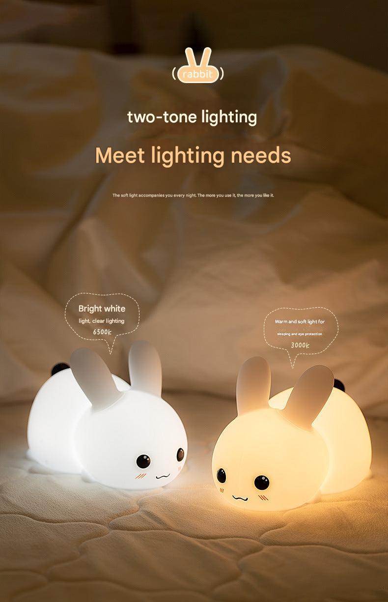 Cute Silicone Rabbit LED Night Light, Dual Color USB Rechargeable, Touch-Sensor Control for Kids and Adults