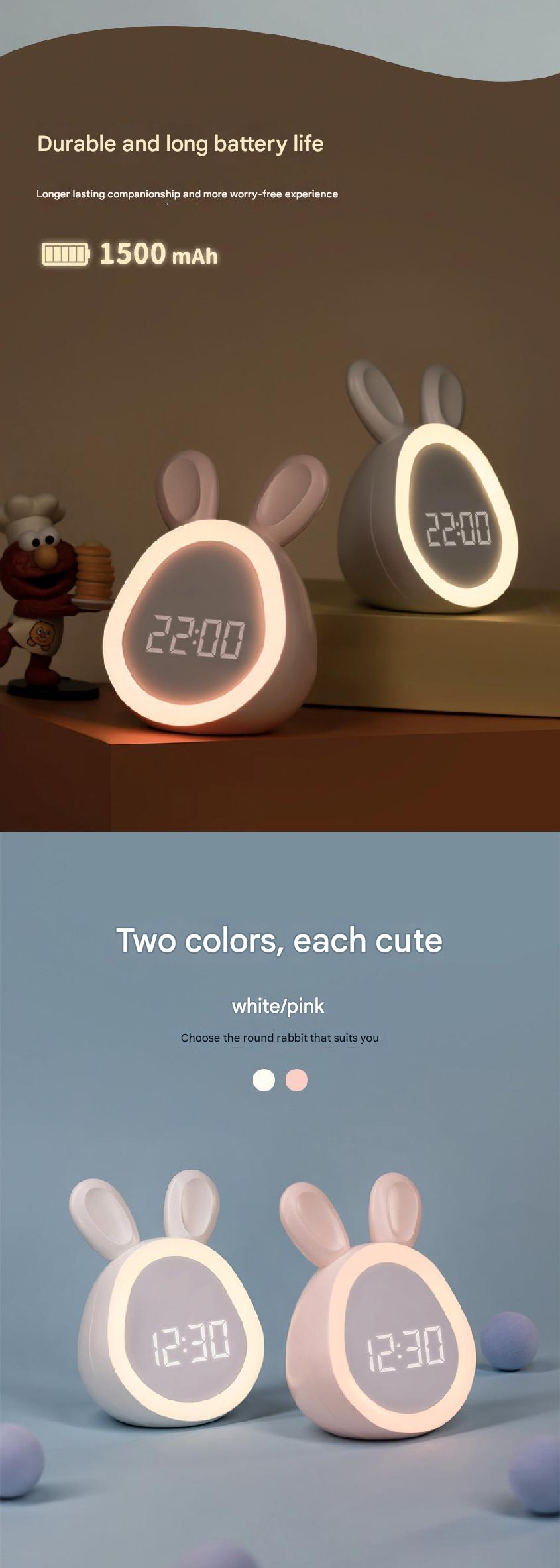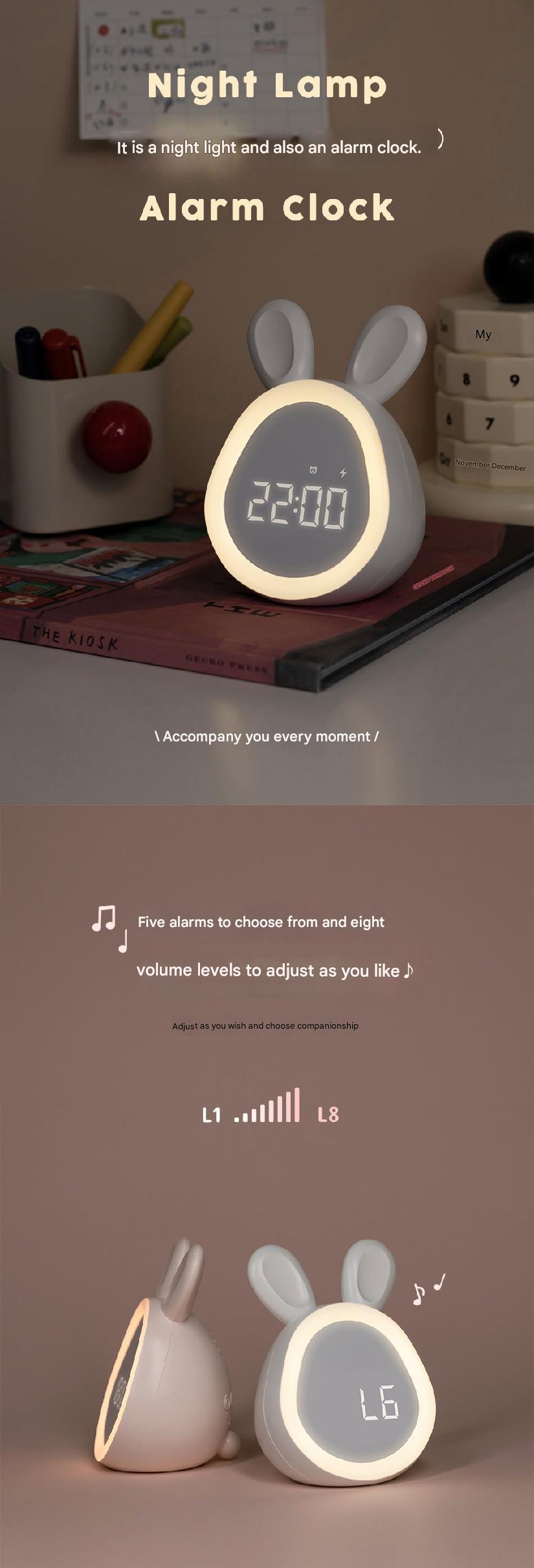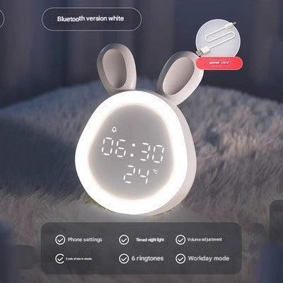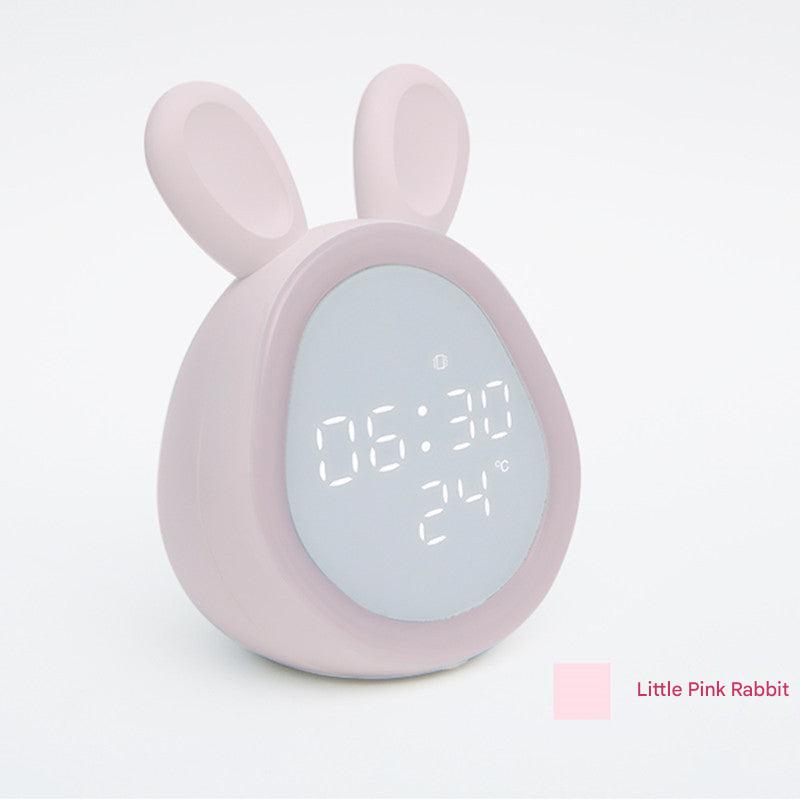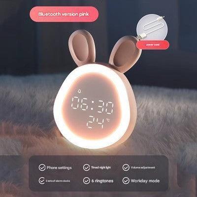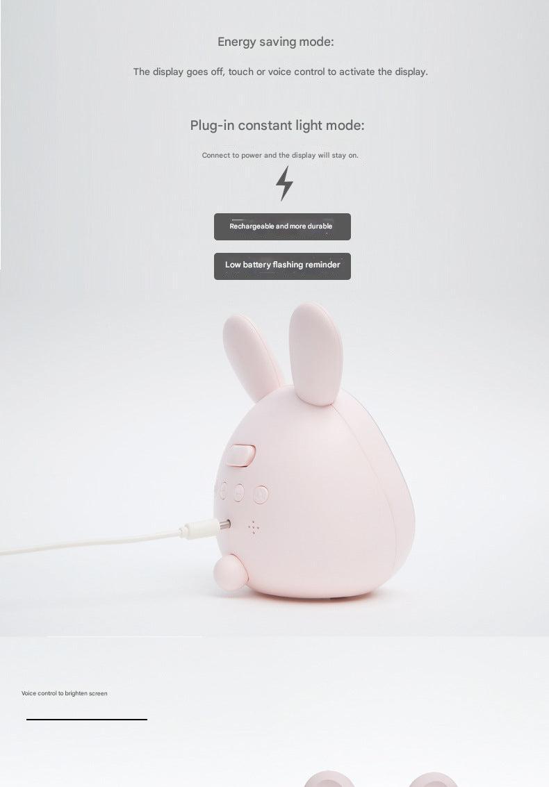 Cute Time Bunny LED Alarm Clock with Night Light, Rechargeable Digital Display for Kids and Students