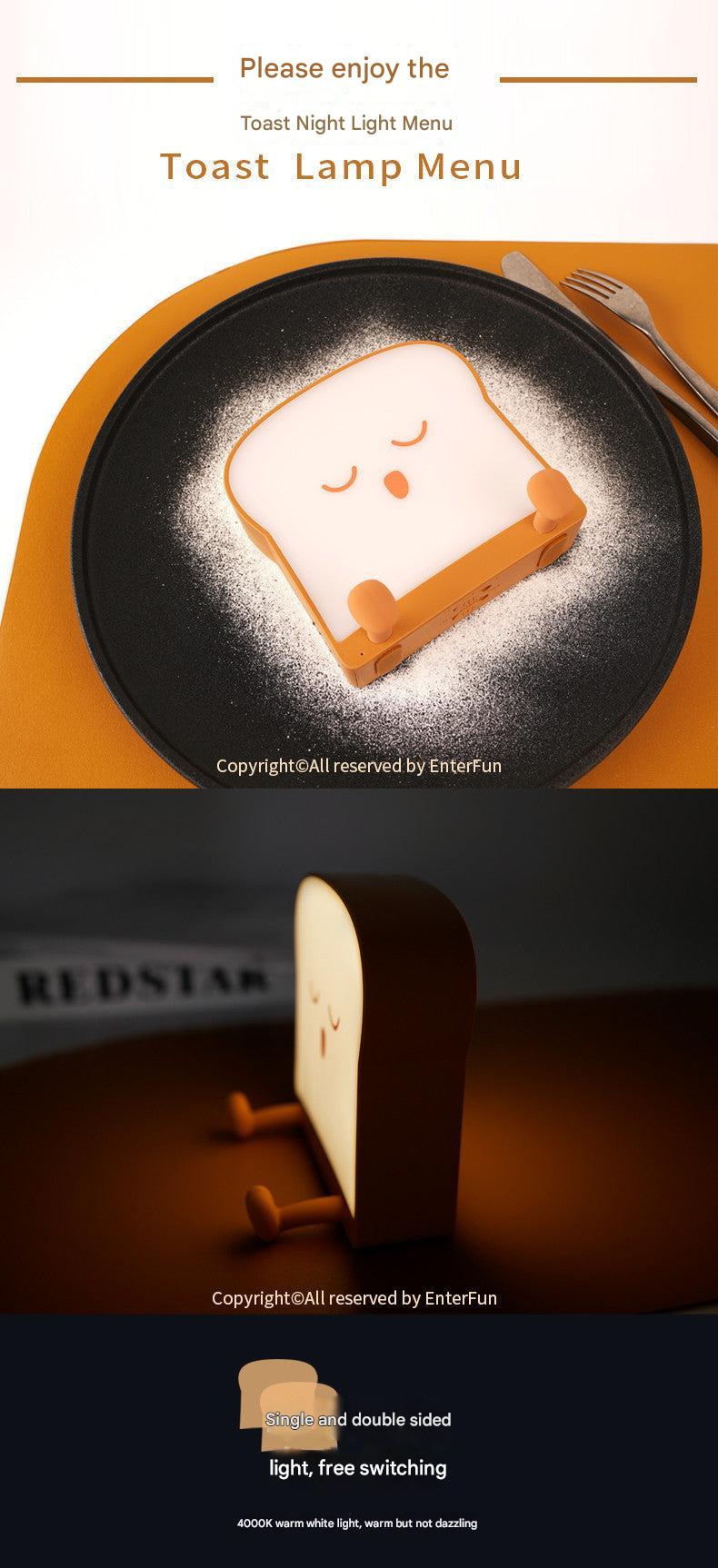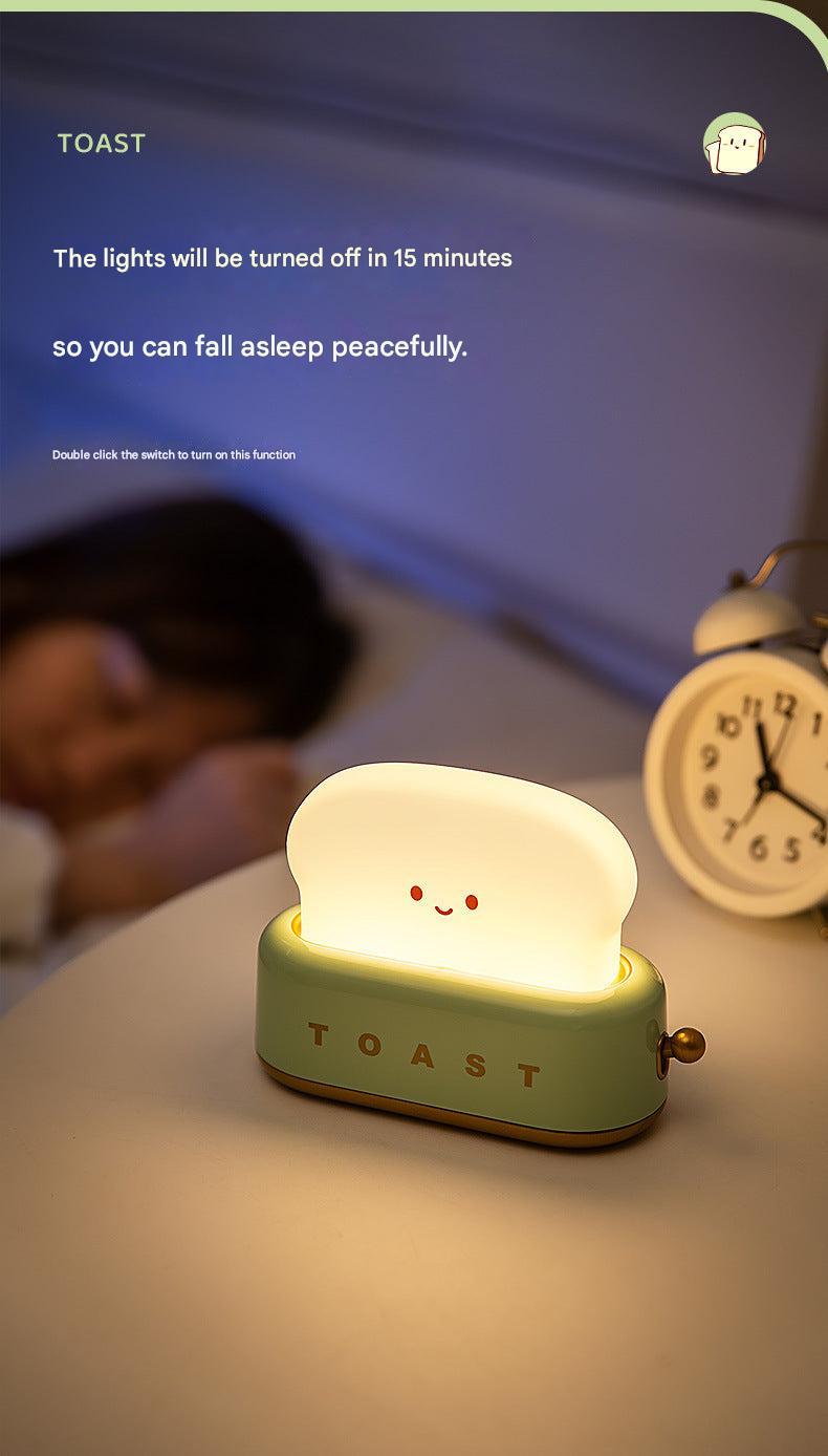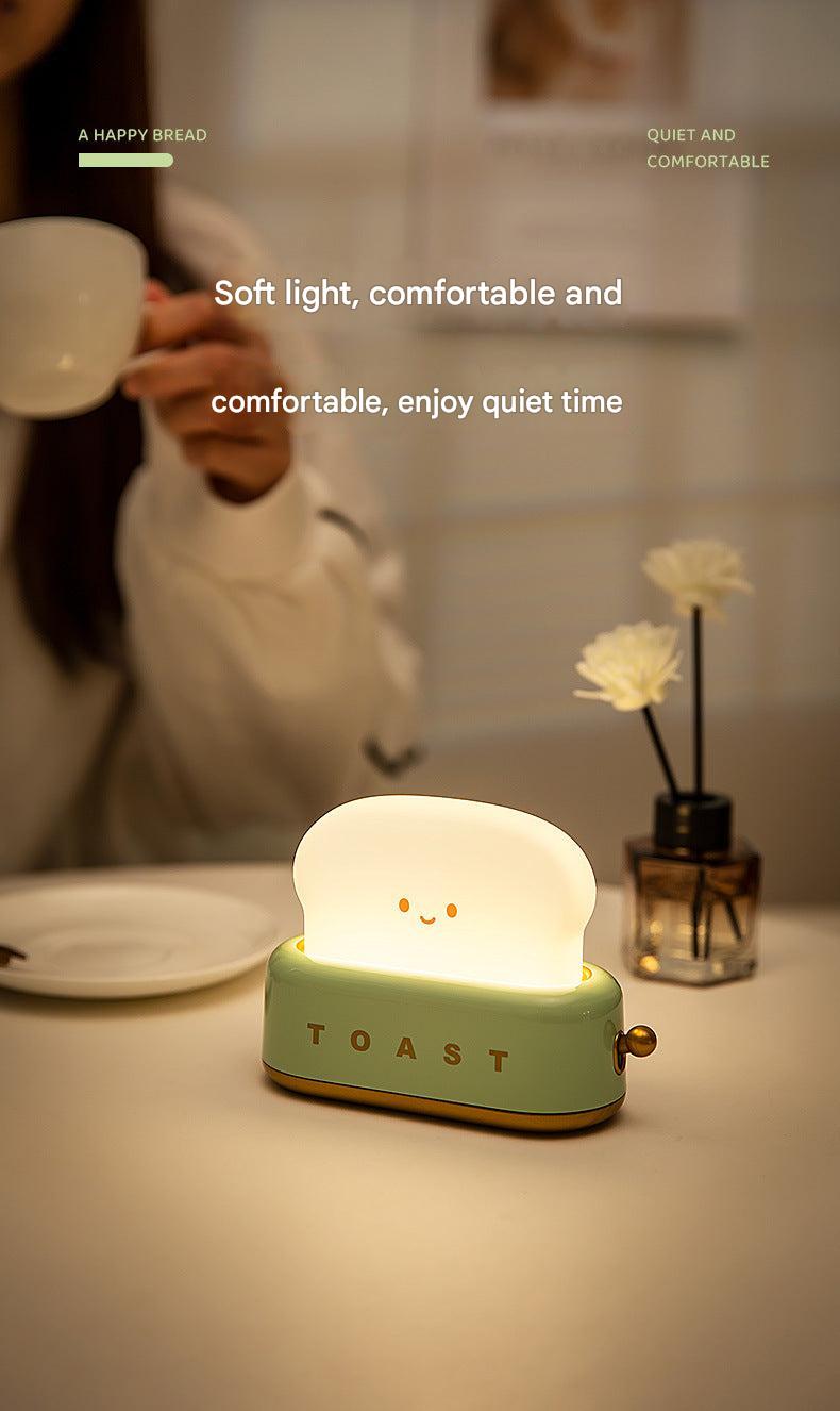 Cute Toast Bread Night Light - USB Charging, Tap Control for Bedrooms