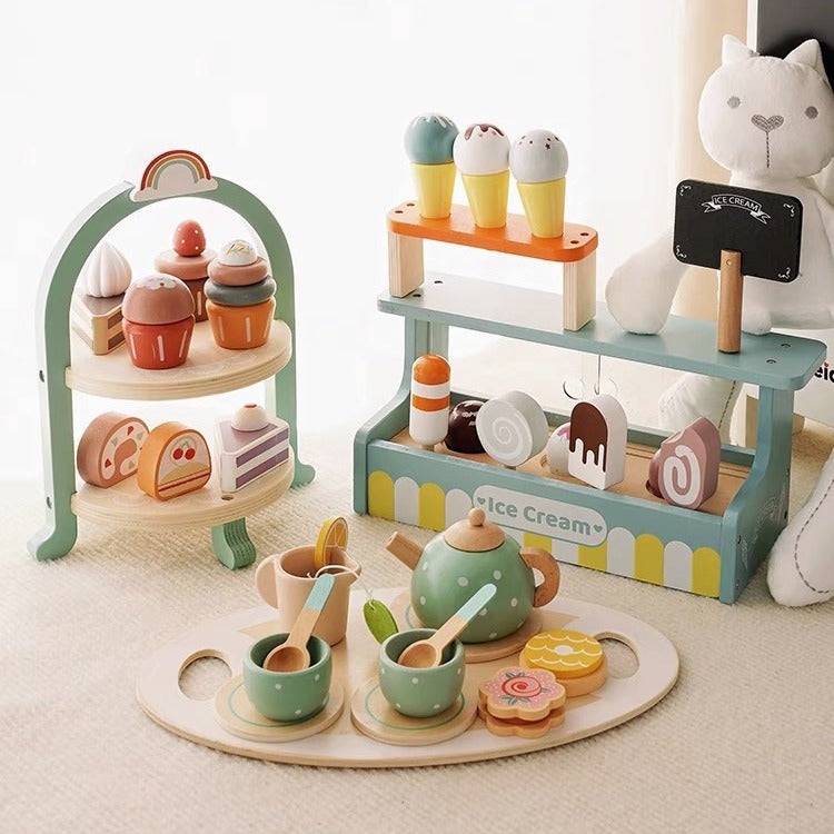 • Complete Cooking Experience: Set includes a wooden mixer, tea set, juicer, and dessert stand for limitless culinary adventures.