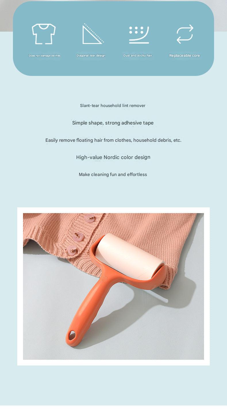 Easy Peel Lint Roller with Refillable Sticky Sheets for Pet Hair and Dust Removal