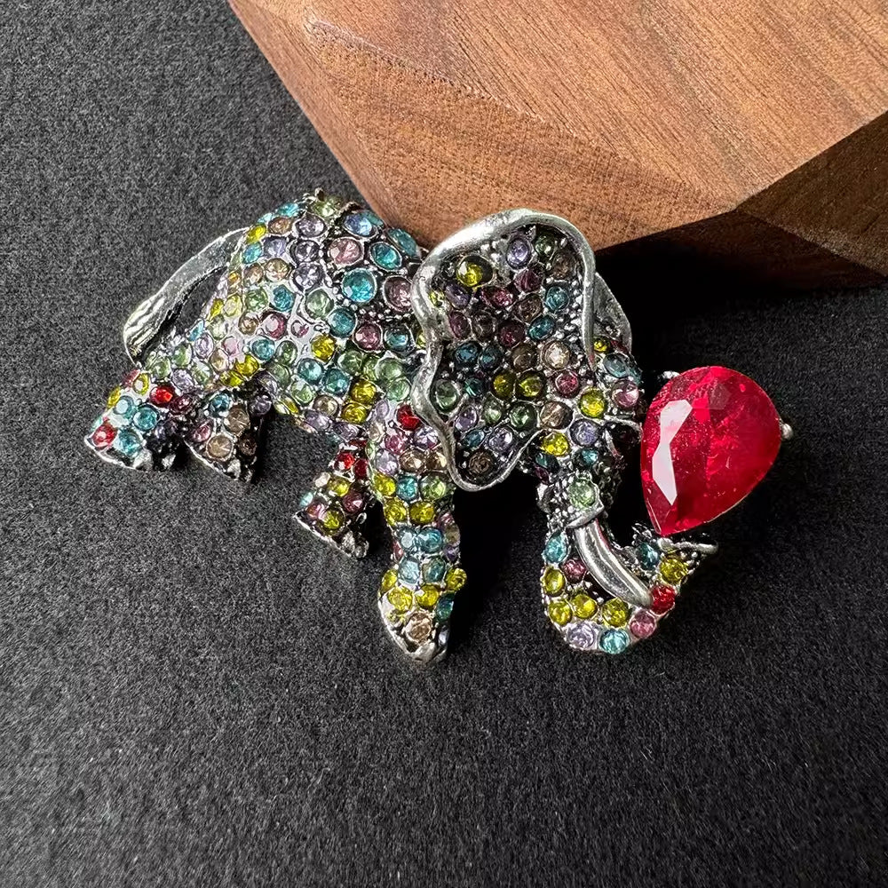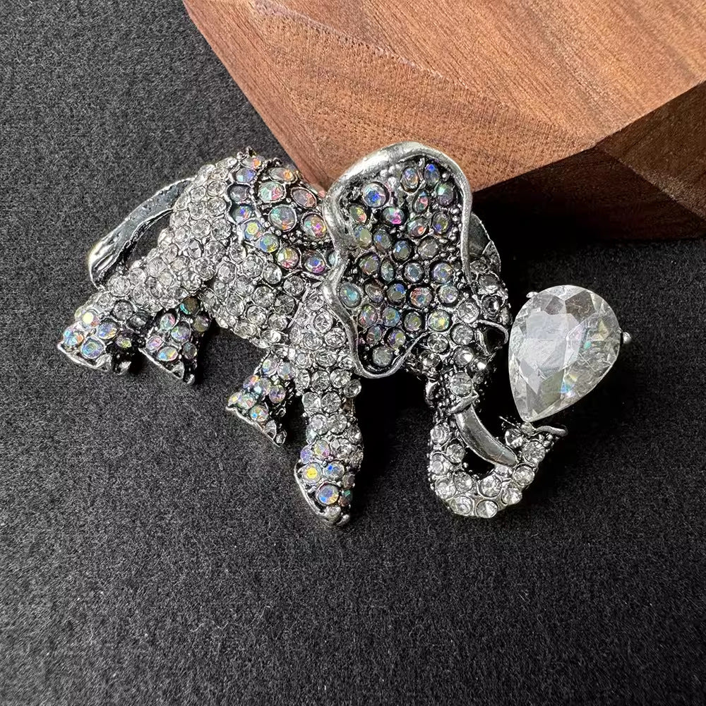 Elegant Alloy Elephant Brooch with Rhinestones - Fashion Forward Accessories