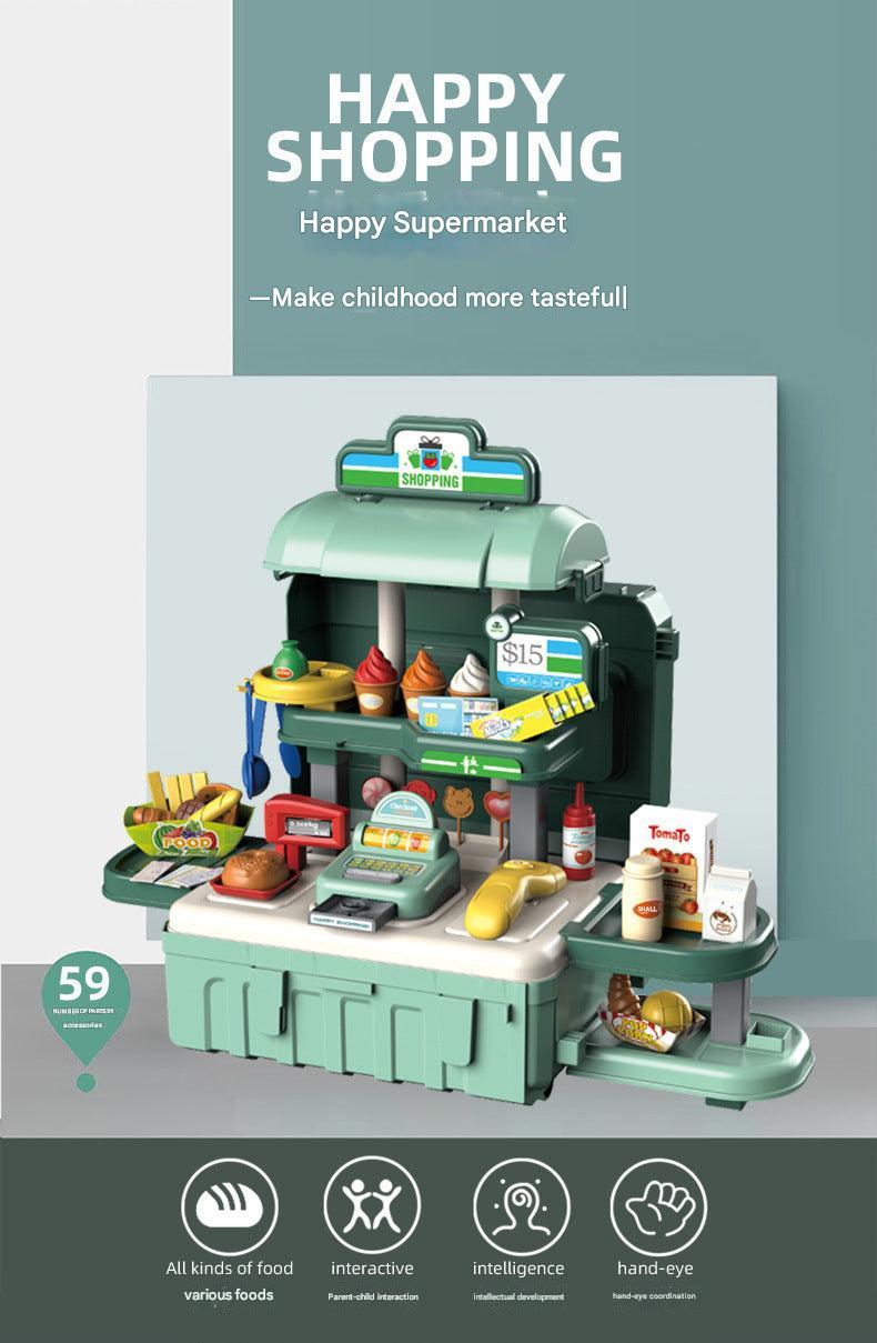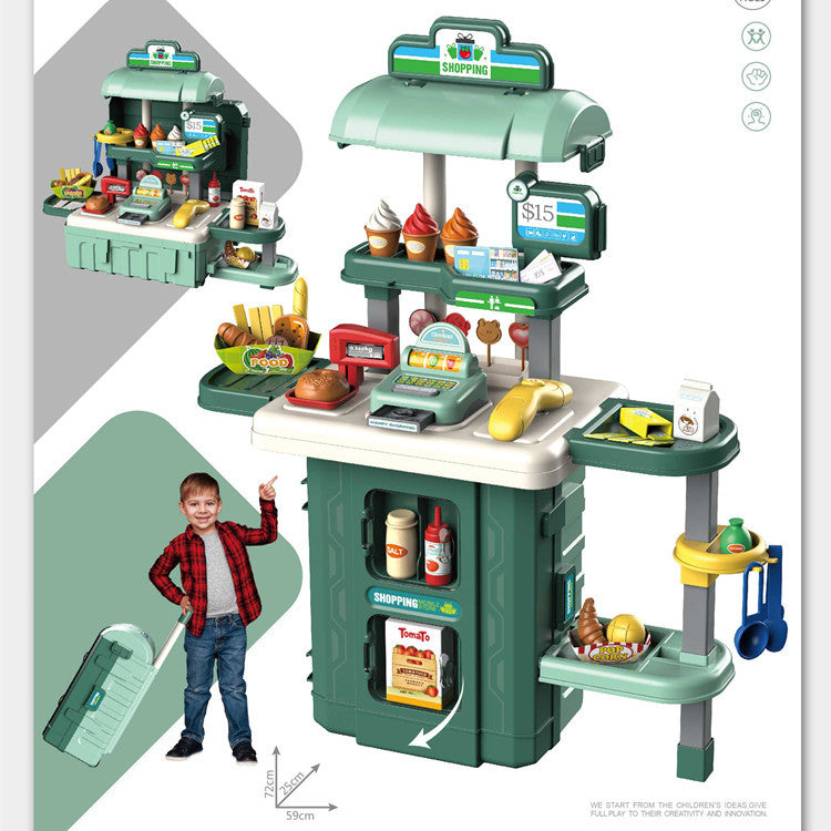 Children's Role Play Toy Set - Kitchen, Doctor & Supermarket Play Sets with Wheeled Suitcase for Easy Storage