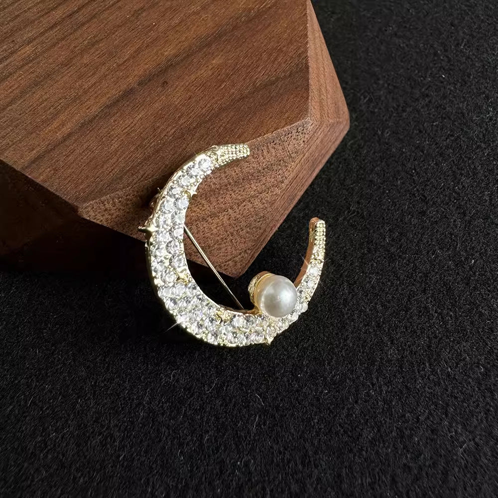 Elevate your style with our Fashionable Moon Pearl Brooch, adorned with glittering rhinestones. This unique accessory features a charming moon shape, perfect for adding a touch of celestial elegance to any outfit. Crafted from high-quality alloy, this brooch ensures durability and a long-lasting shine. Its versatile design makes it suitable for various occasions, whether you're dressing up for a formal event or looking to add flair to a casual ensemble. The stunning rhinestones not only enhance its aesthetic, but they also reflect light beautifully, ensuring you stand out in any crowd. Ideal for gifting to loved ones on special milestones or just as a treat for yourself, this brooch is a must-have accessory that embodies both style and sophistication.